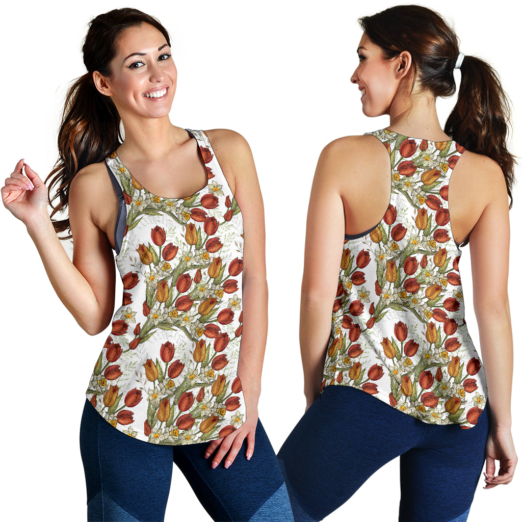 Red tulips and daffodils pattern Women Racerback Tank Top
