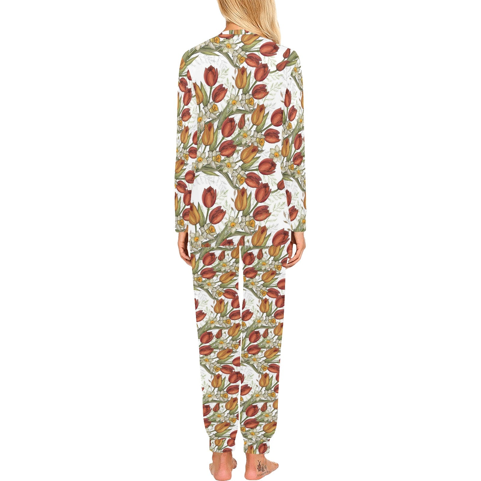 Red tulips and daffodils pattern Women's All Over Print Pajama Set