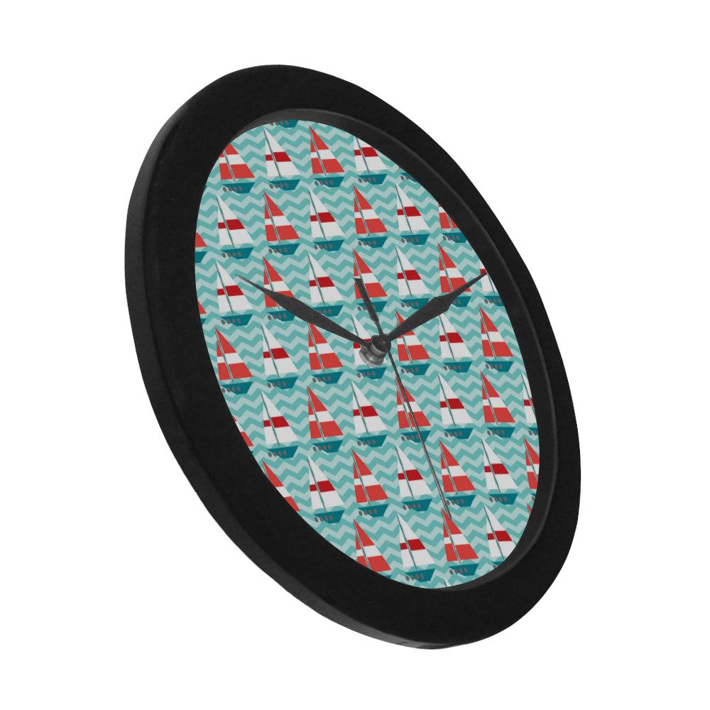 Red White sailboat wave background Elegant Black Wall Clock is a uniqued design and limited item. It made to order, hand printed, and sewn with love in our factory.