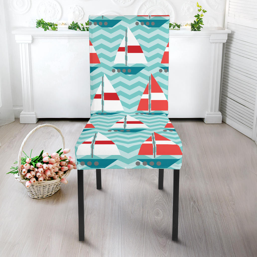 Red White Sailboat Wave Background Dining Chair Slipcover