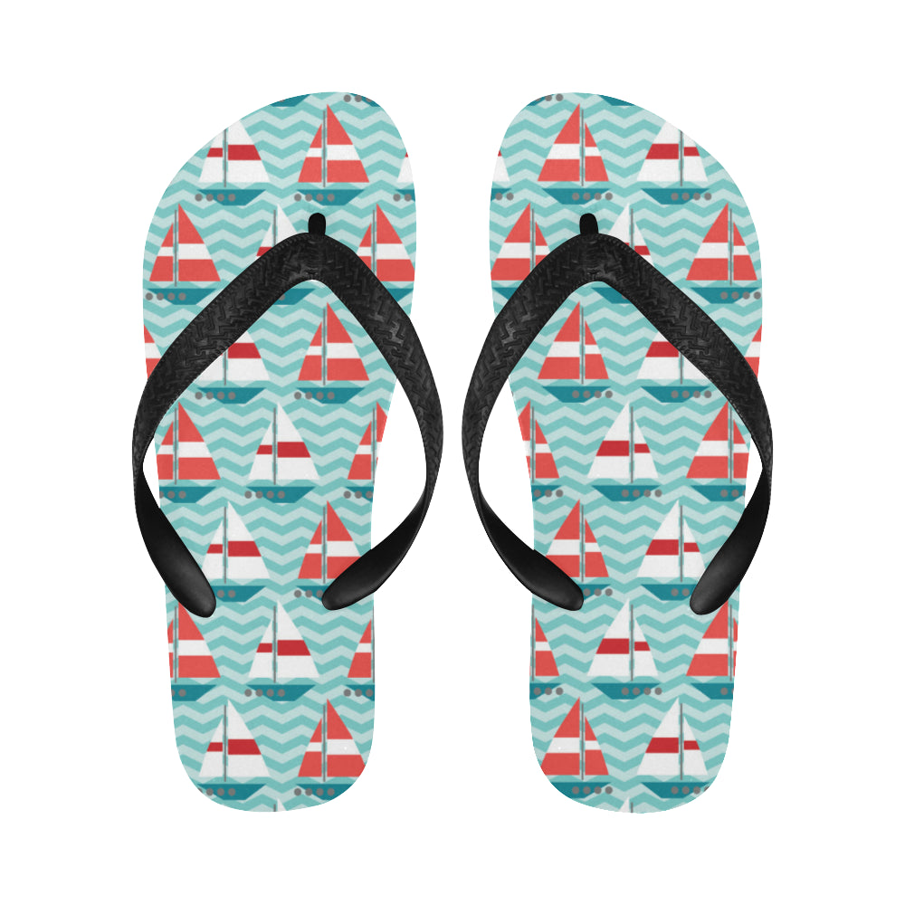 Red White sailboat wave background Unisex Flip Flops