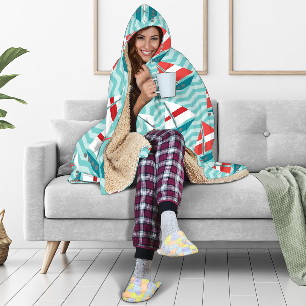 Red White sailboat wave background Hooded Blanket are custom-made-to-order and handcrafted to the highest quality standards.