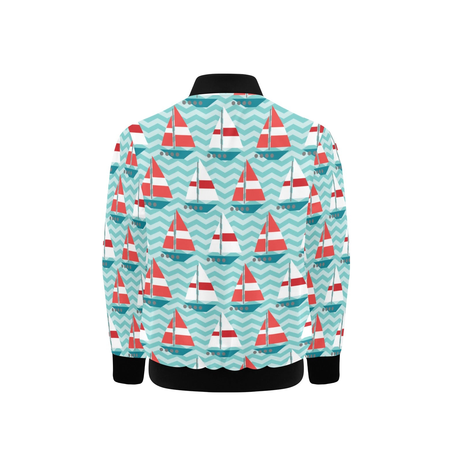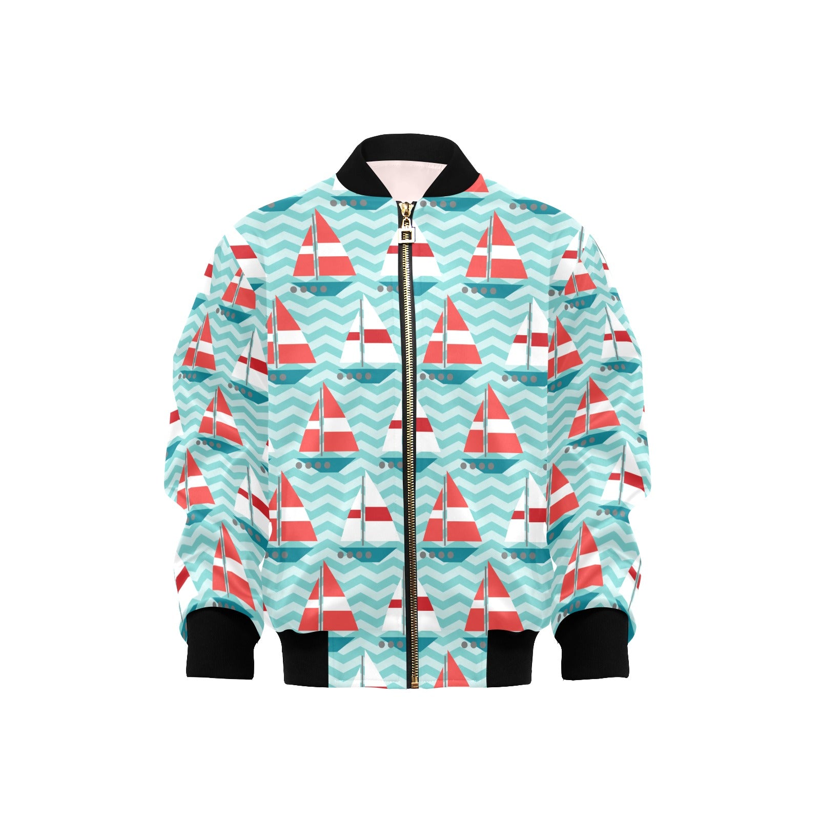 Red White sailboat wave background Kids' Boys' Girls' Bomber Jacket