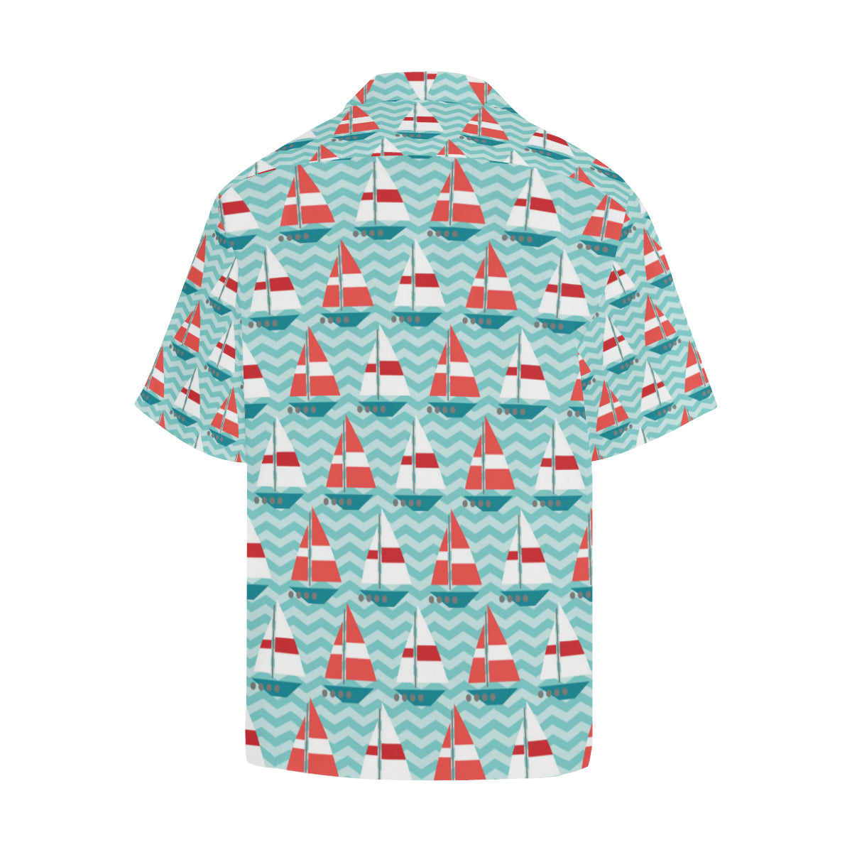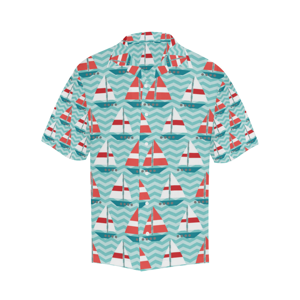 Red White sailboat wave background Men's All Over Print Hawaiian Shirt is a uniqued design and limited item. It made to order, hand printed, and sewn with love in our factory.
