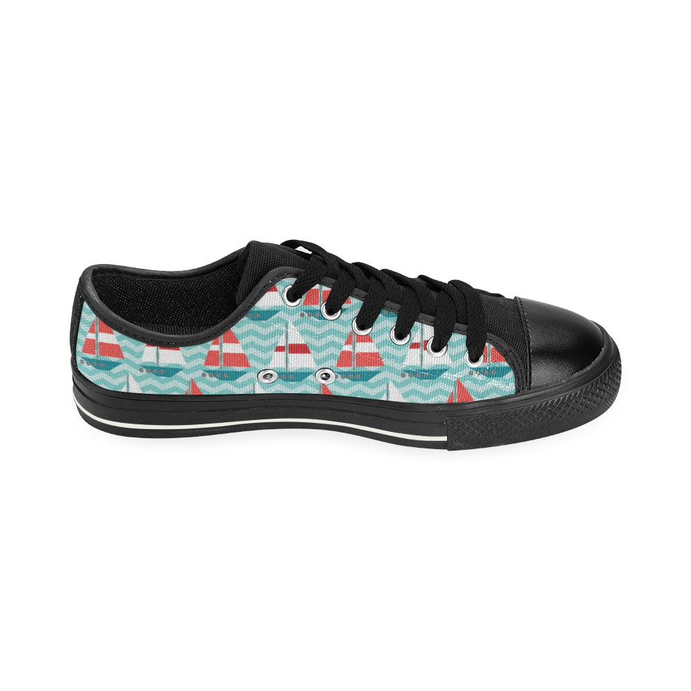 Red White sailboat wave background Men's Low Top Canvas Shoes Black