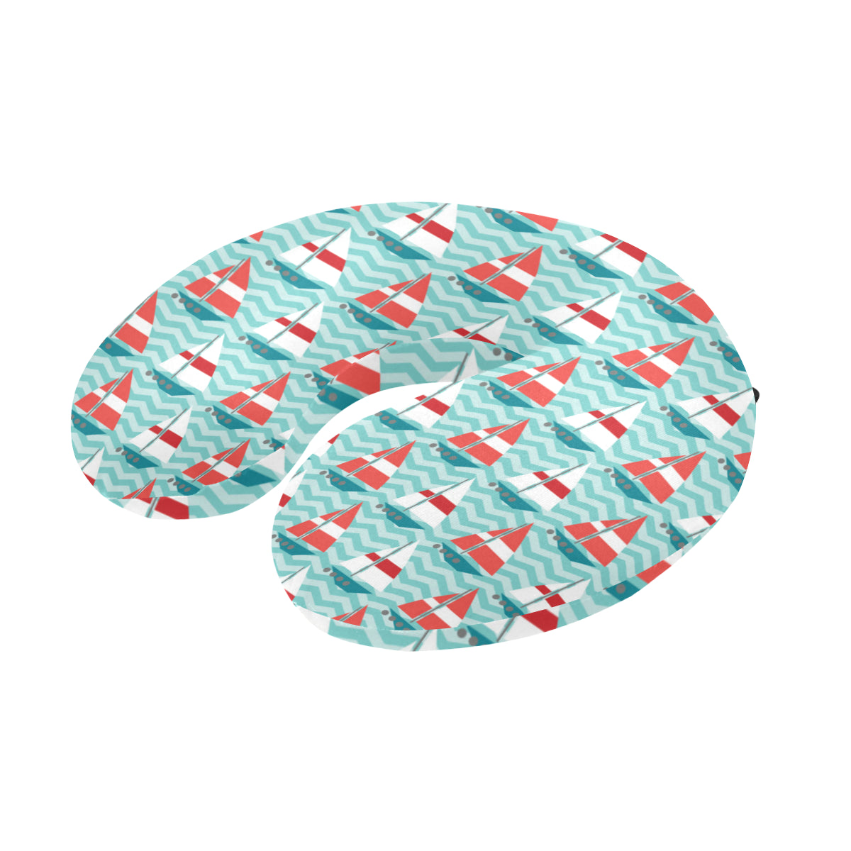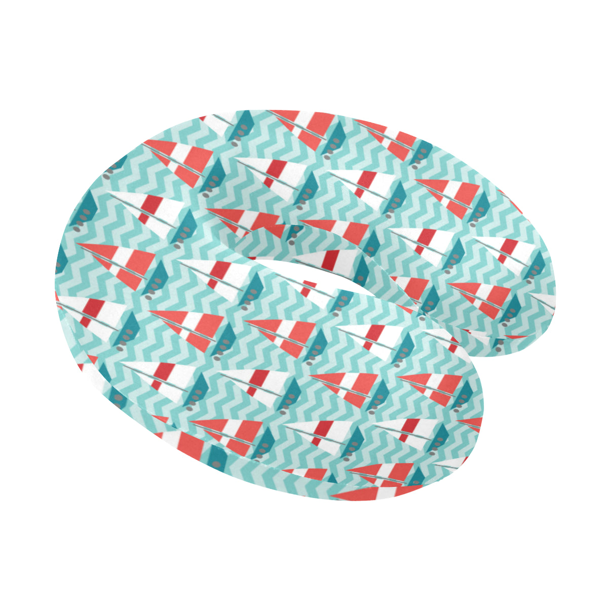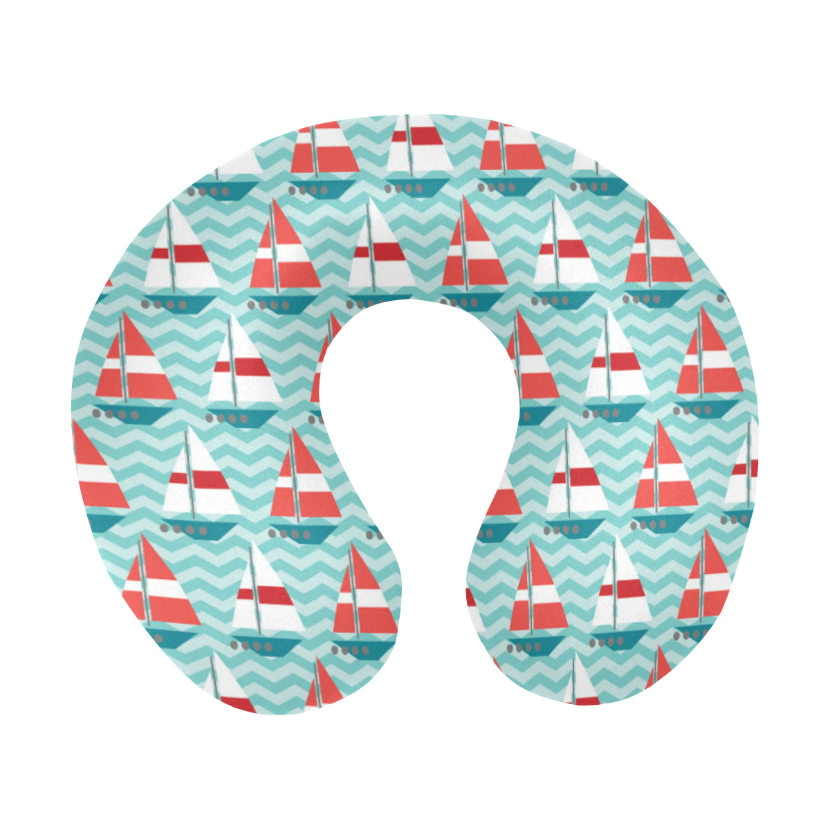 Red White sailboat wave background U-Shaped Travel Neck Pillow