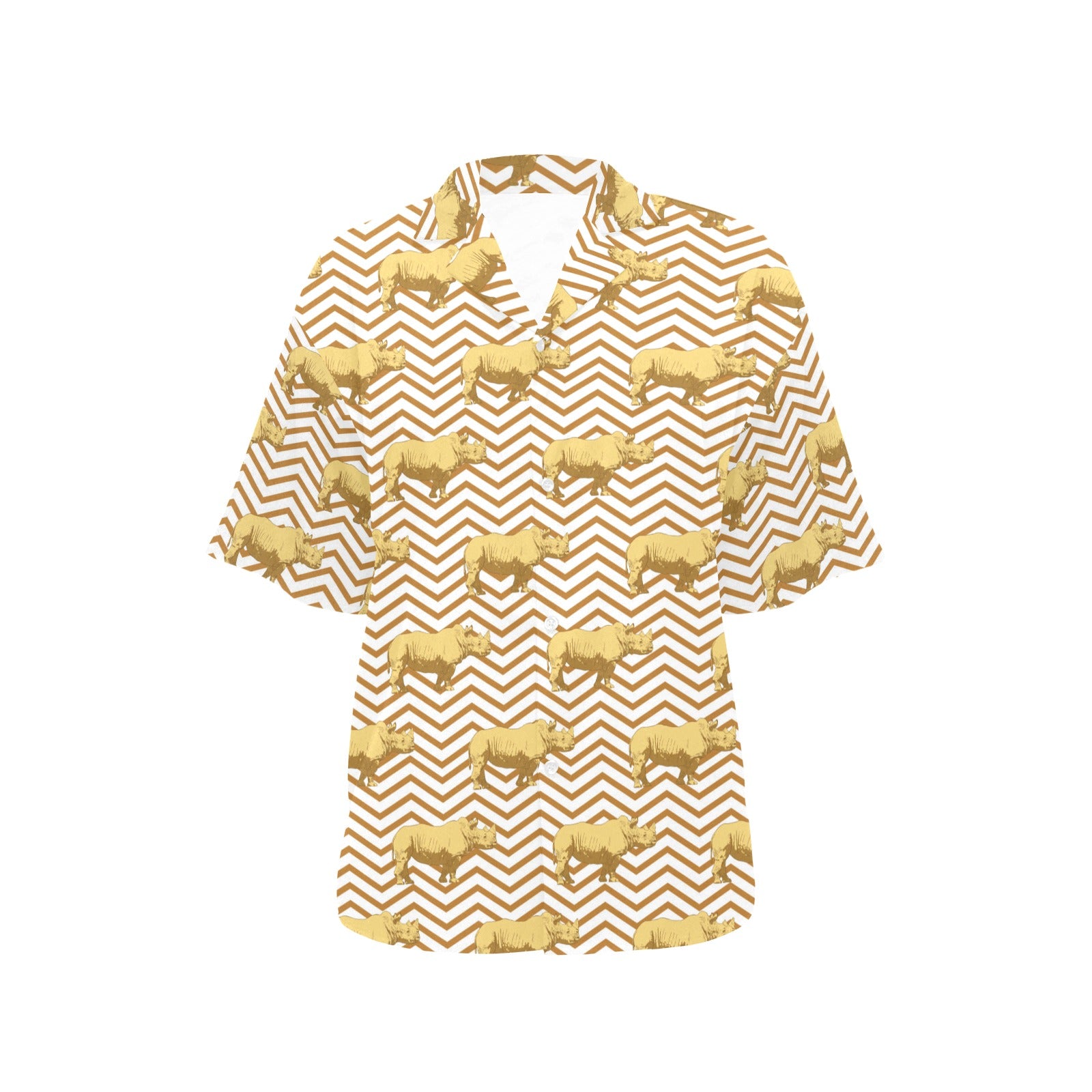 Rhino yellow theme pattern Women's All Over Print Hawaiian Shirt