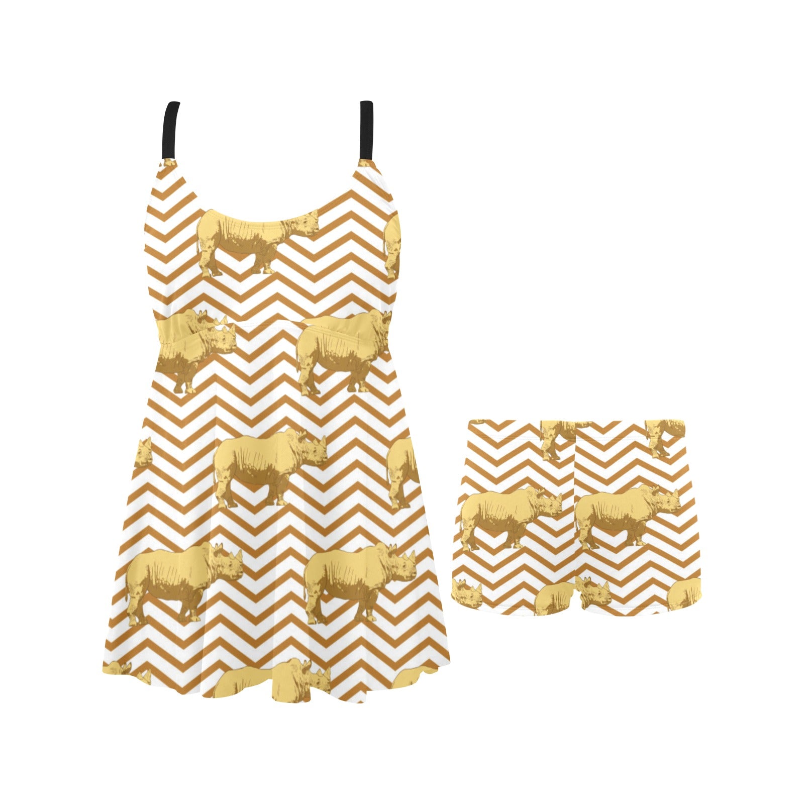 Rhino yellow theme pattern Chest Sexy Pleated Two Piece Swim Dress