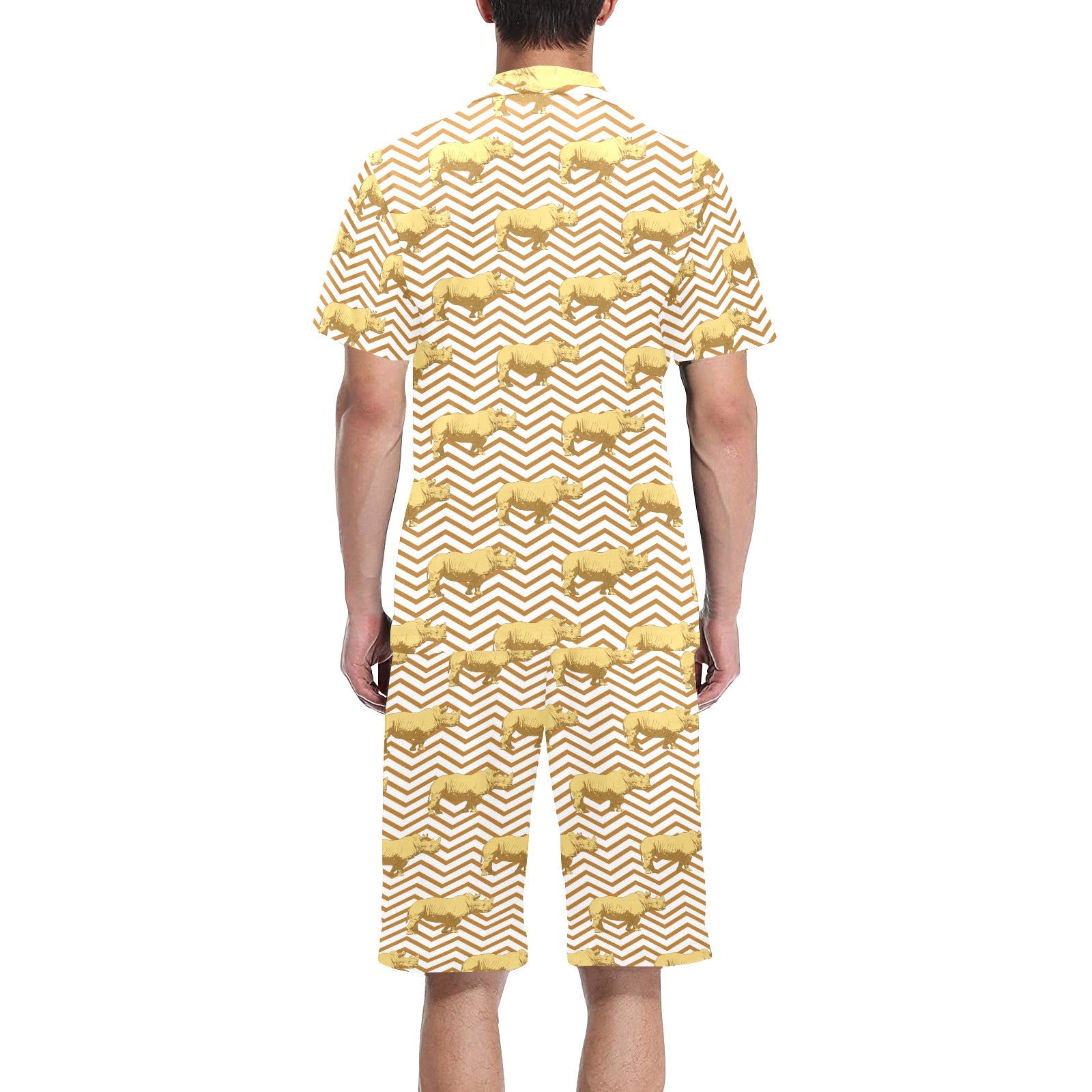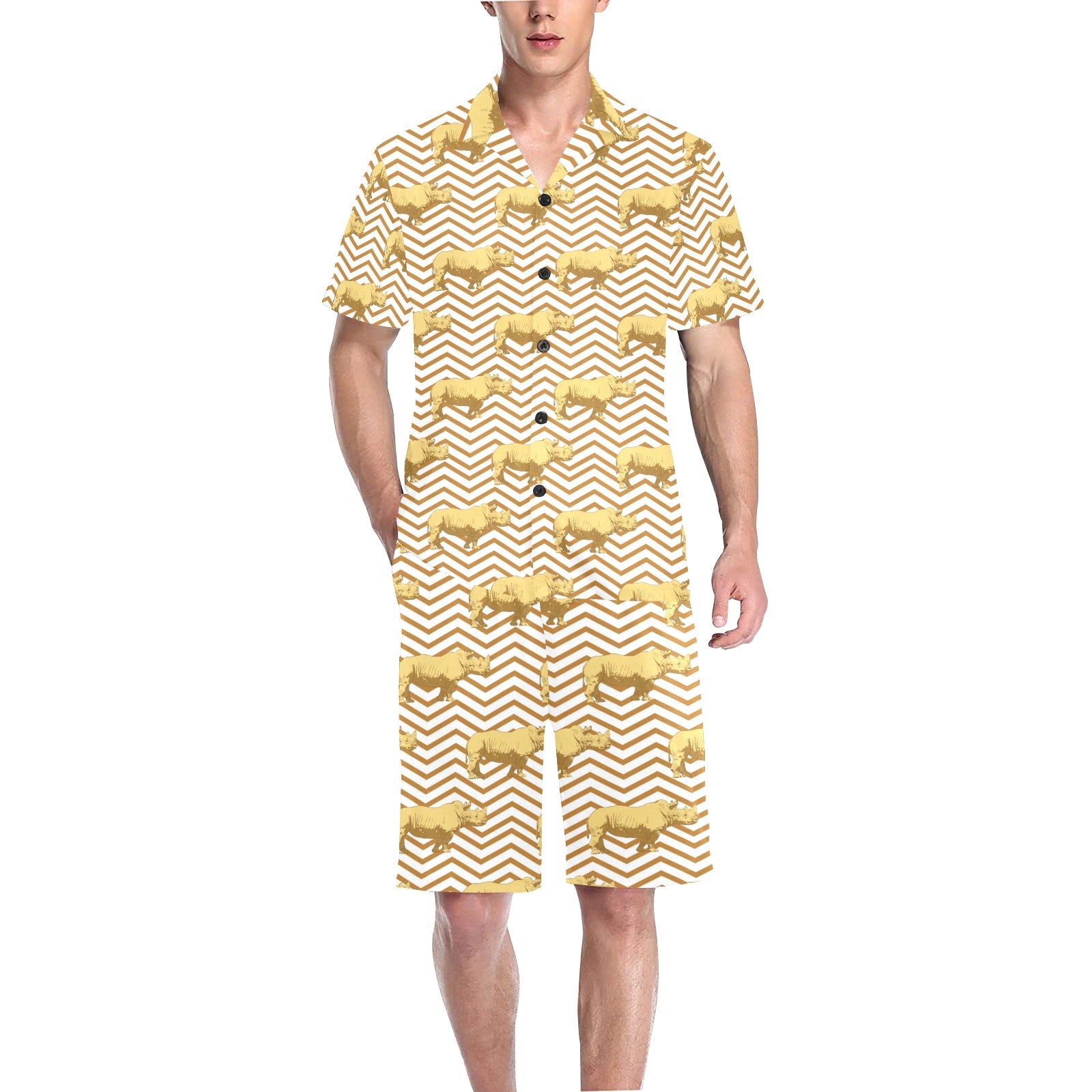 Rhino yellow theme pattern Men's V-Neck Short Pajama Set