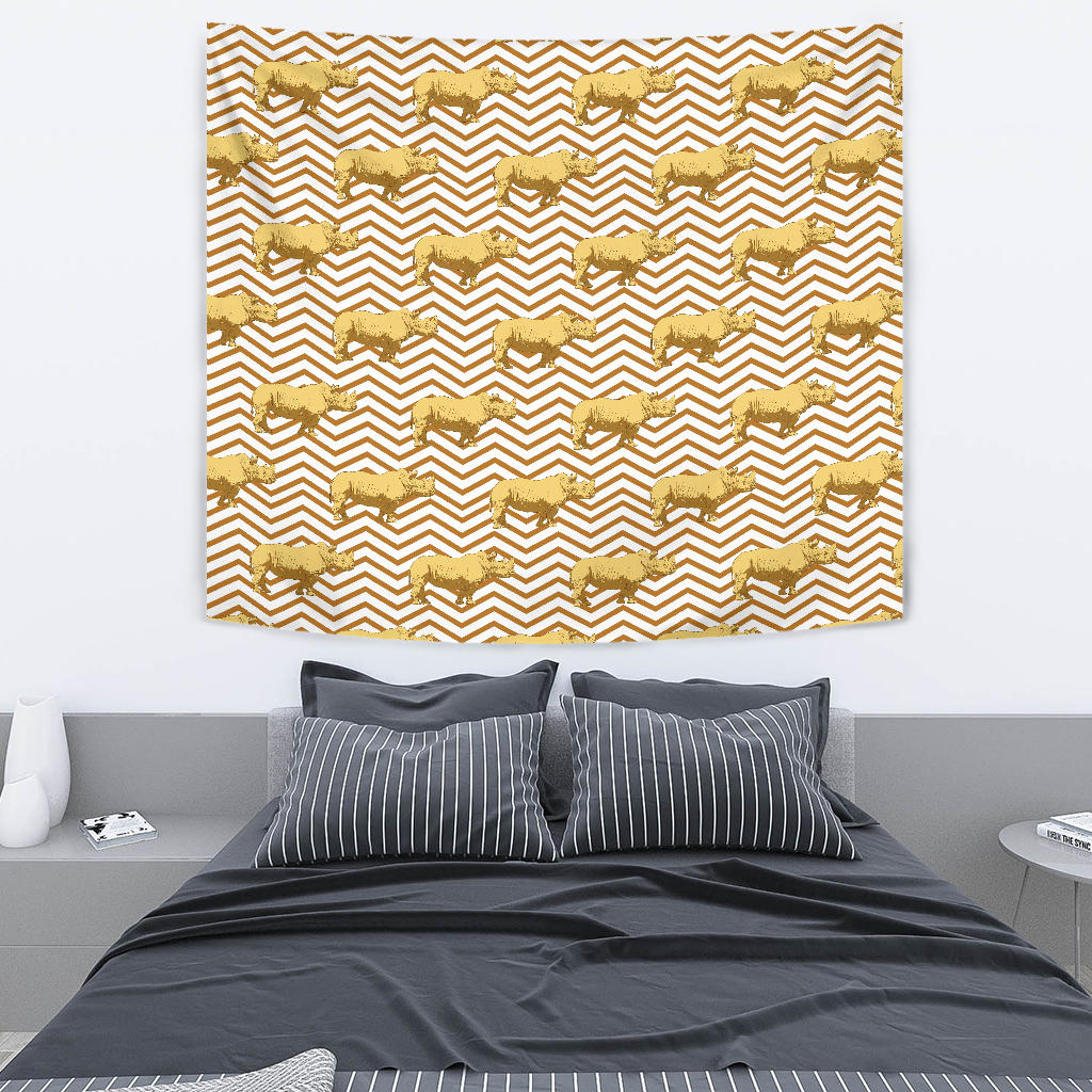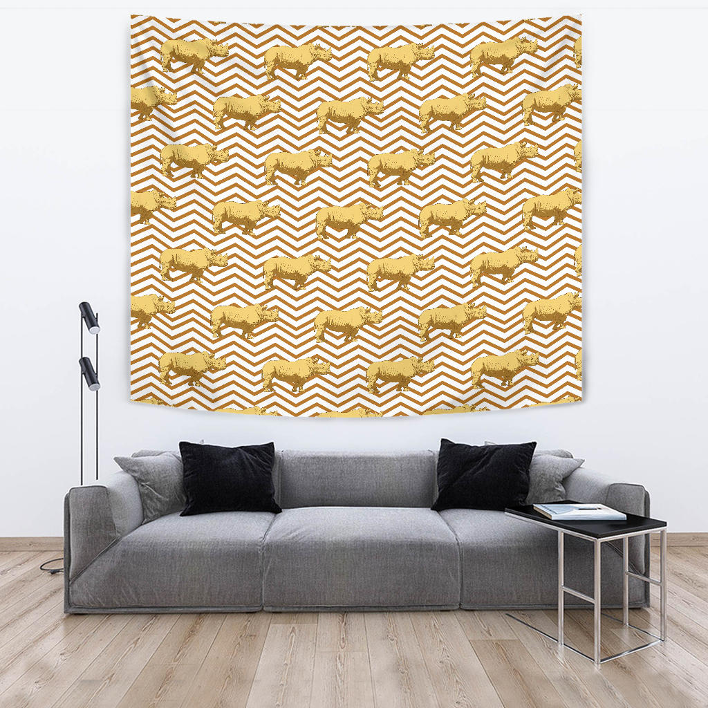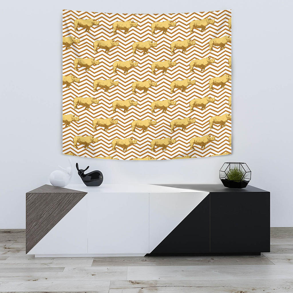 Rhino yellow theme pattern Tapestry is a uniqued design and limited item. It made to order, hand printed, and sewn with love in our factory.