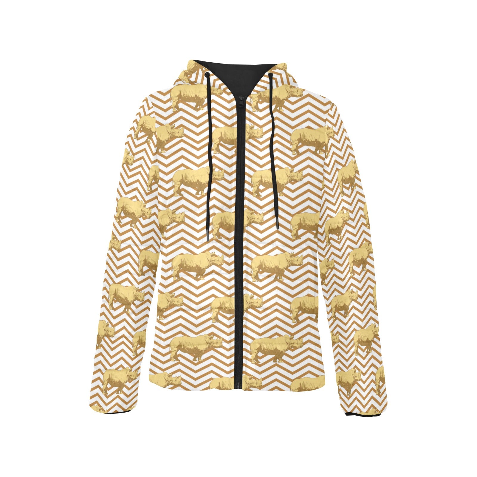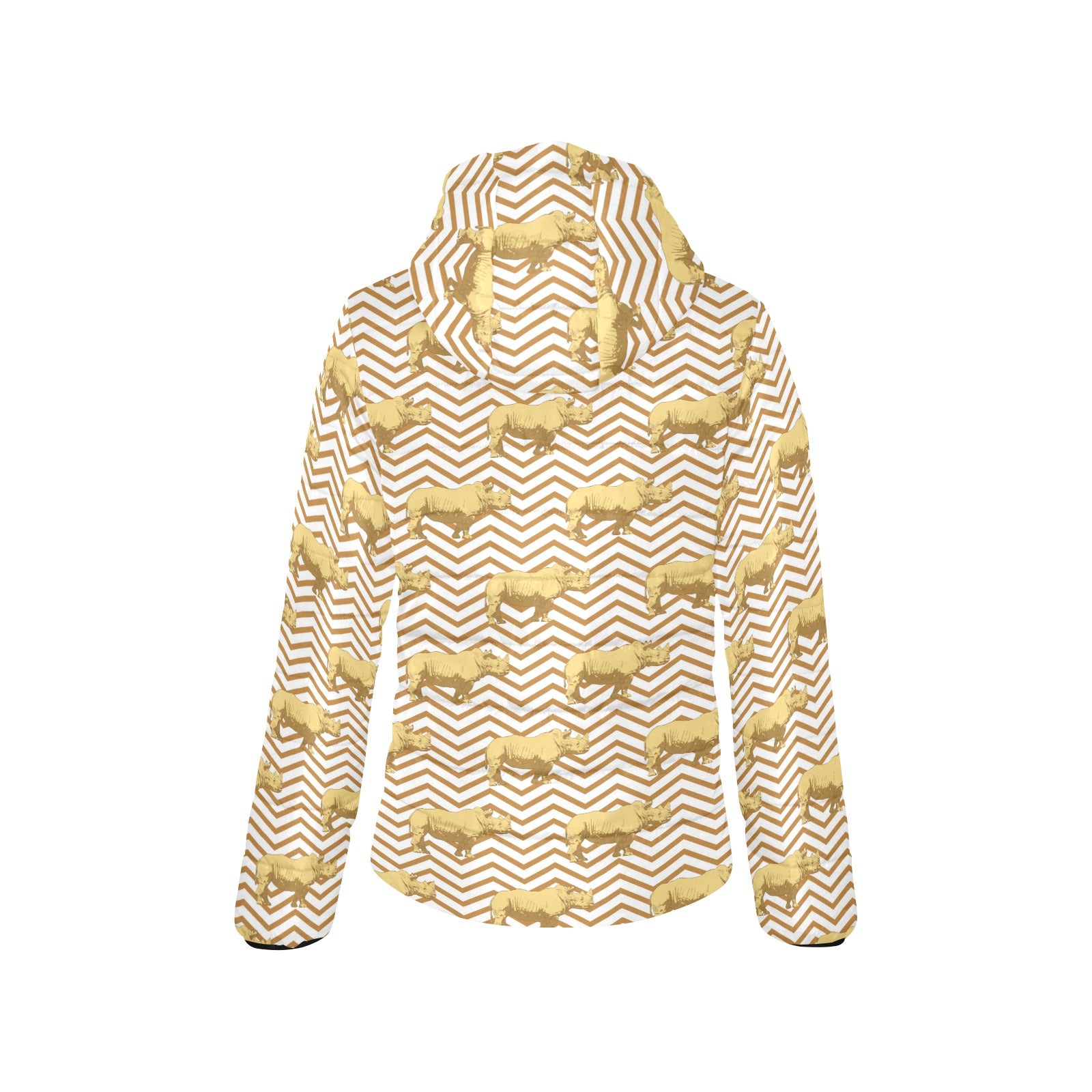 Rhino yellow theme pattern Women's Padded Hooded Jacket