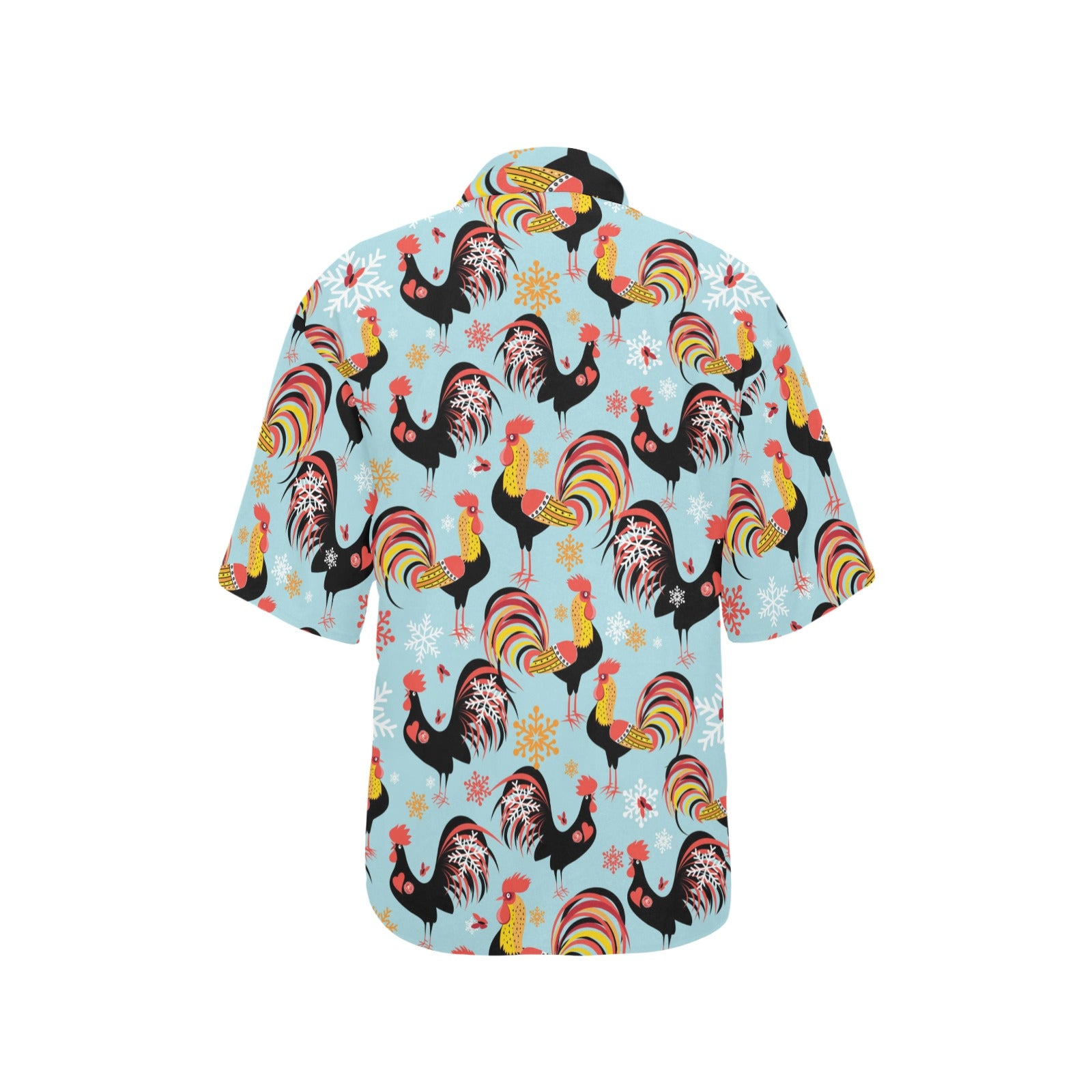 Rooster chicken cock snowfalke Women's All Over Print Hawaiian Shirt
