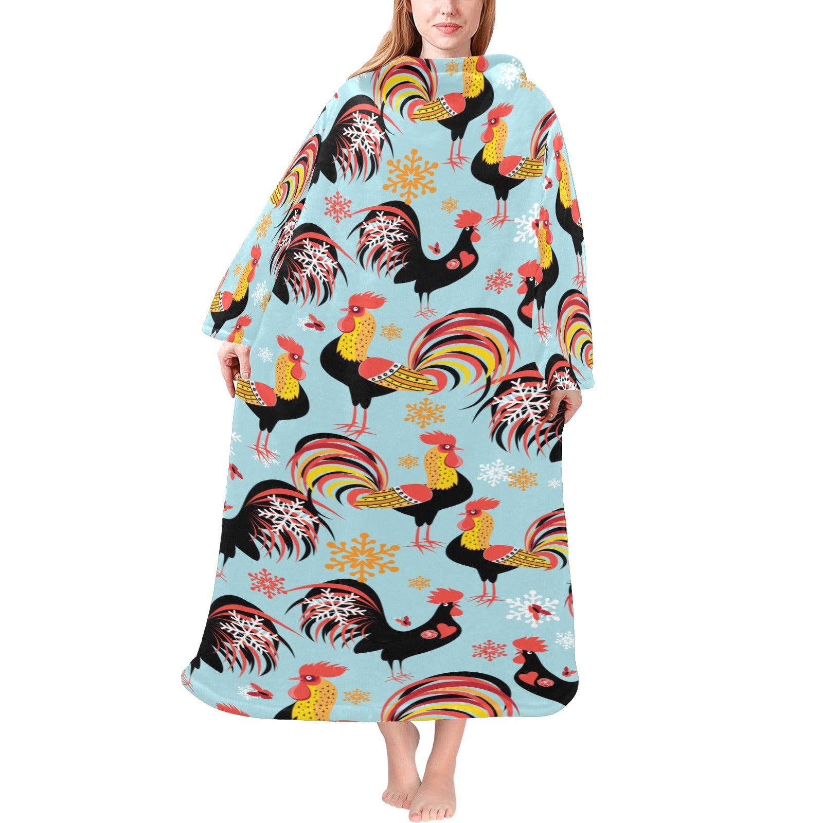 Rooster chicken cock snowfalke Blanket Robe with Sleeves