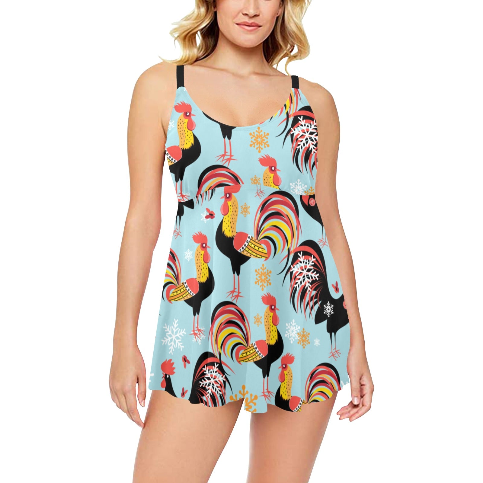 Rooster chicken cock snowfalke Chest Sexy Pleated Two Piece Swim Dress
