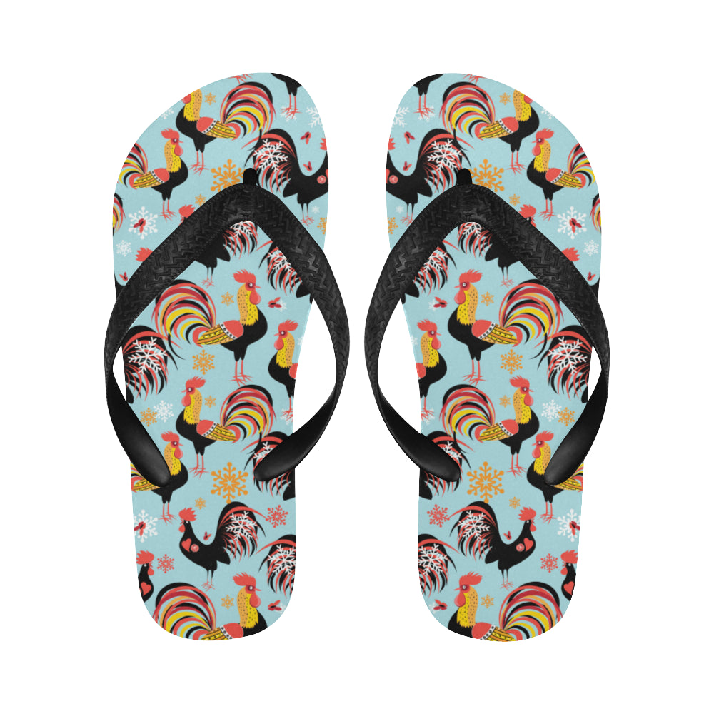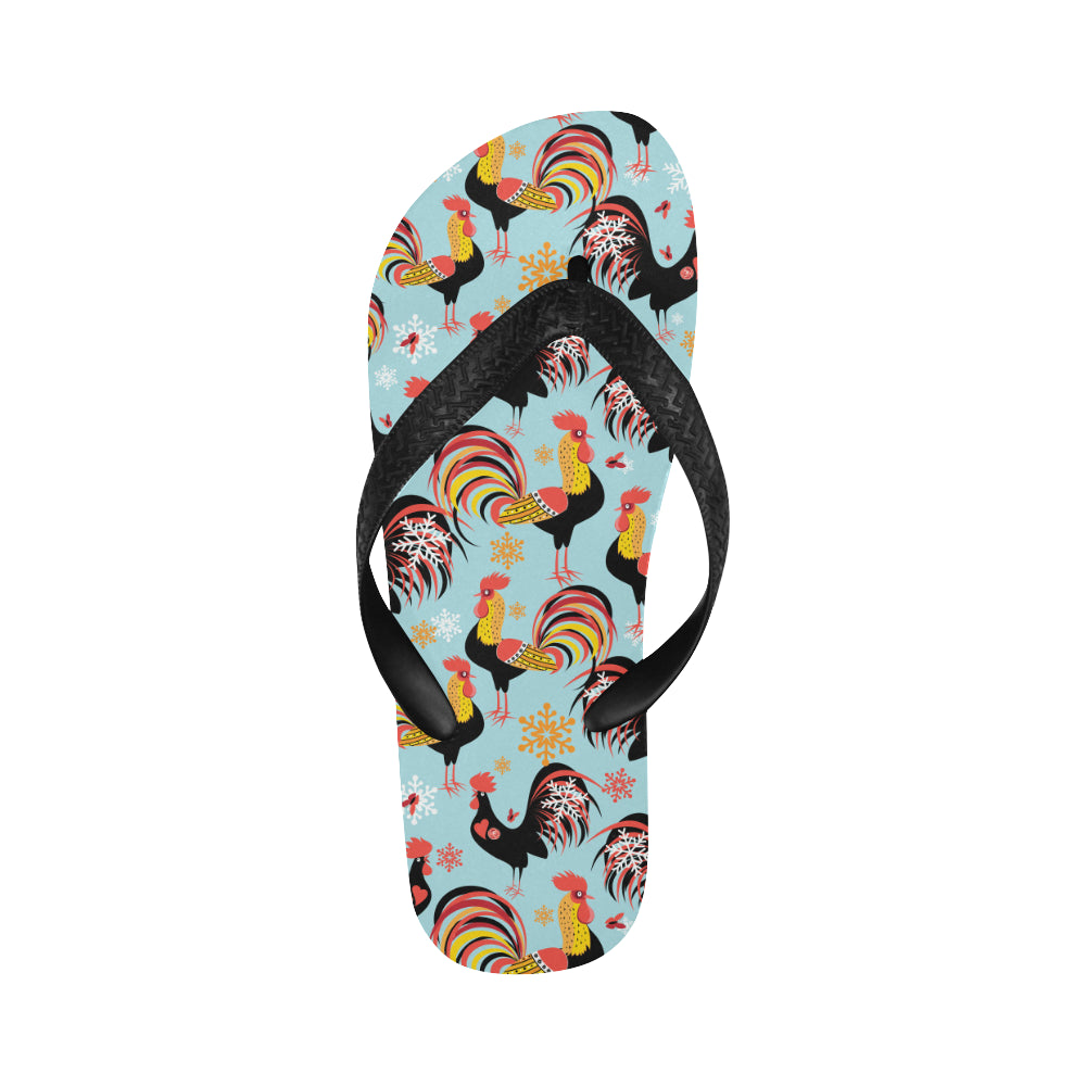 Rooster chicken cock snowfalke Unisex Flip Flops is a uniqued design and limited item. It made to order, hand printed, and sewn with love in our factory.