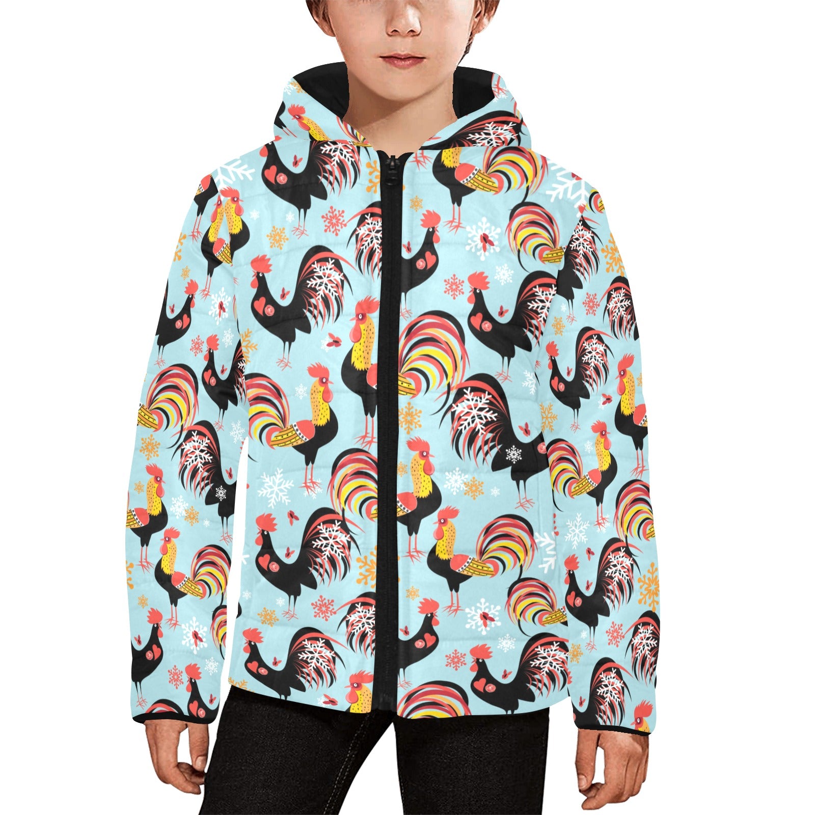 Rooster chicken cock snowfalke Kids' Boys' Girls' Padded Hooded Jacket