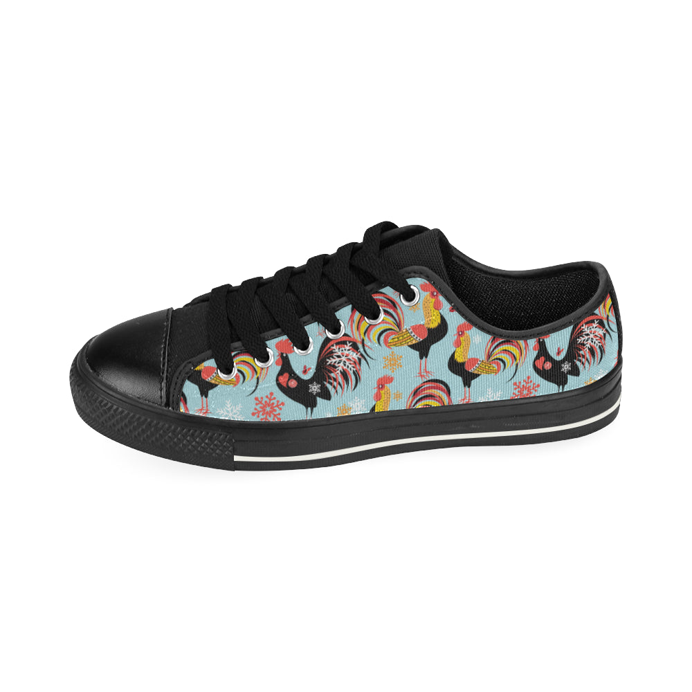 Rooster chicken cock snowfalke Men's Low Top Canvas Shoes Black