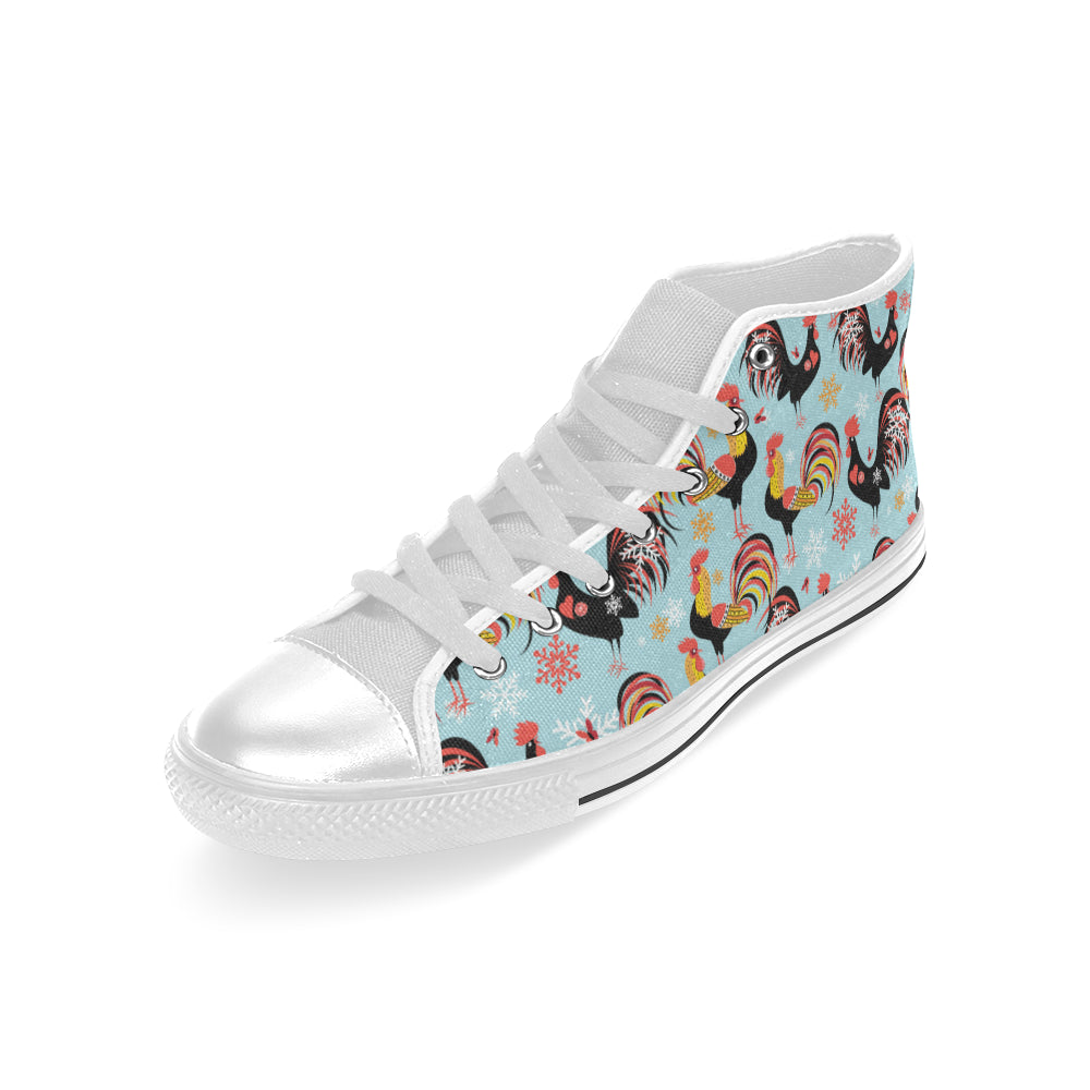 Rooster chicken cock snowfalke Men's High Top Canvas Shoes White