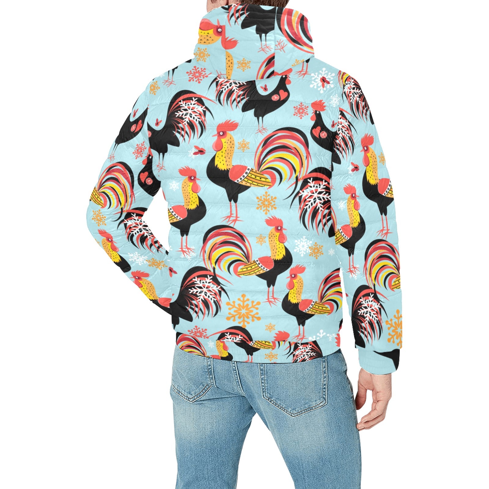 Rooster chicken cock snowfalke Men's Padded Hooded Jacket