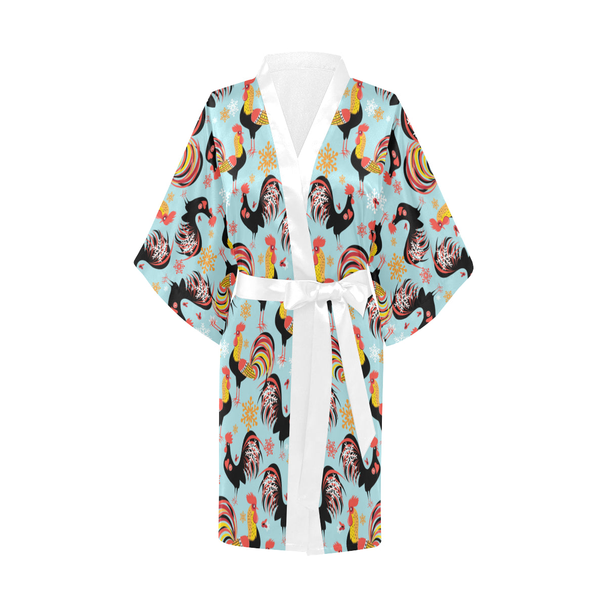 Rooster chicken cock snowfalke Women's Short Kimono Robe is a uniqued design and limited item. It made to order, hand printed, and sewn with love in our factory.