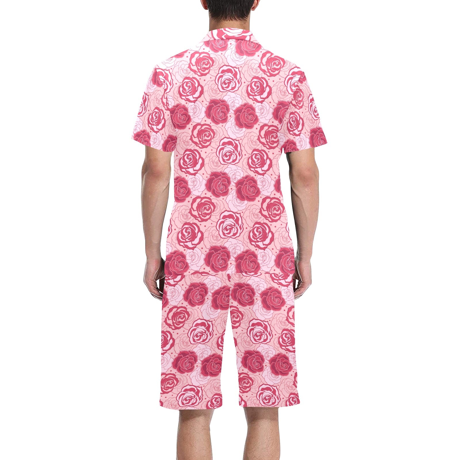 Rose Pattern Print Design 02 Men's V-Neck Short Pajama Set