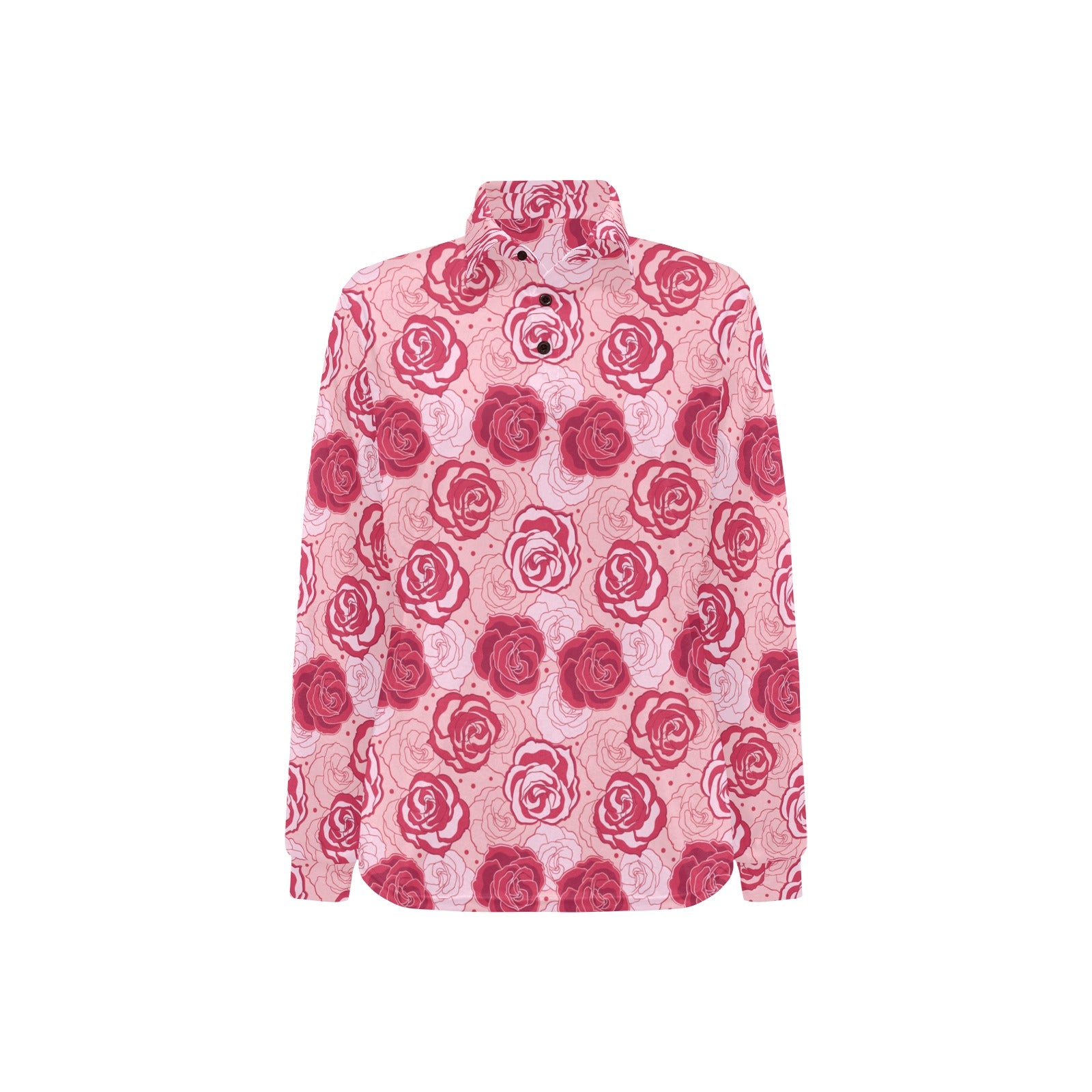 Rose Pattern Print Design 02 Women's Long Sleeve Polo Shirt