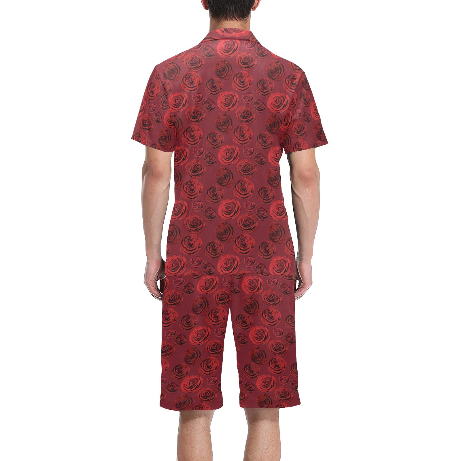 Rose Pattern Print Design 03 Men's V-Neck Short Pajama Set
