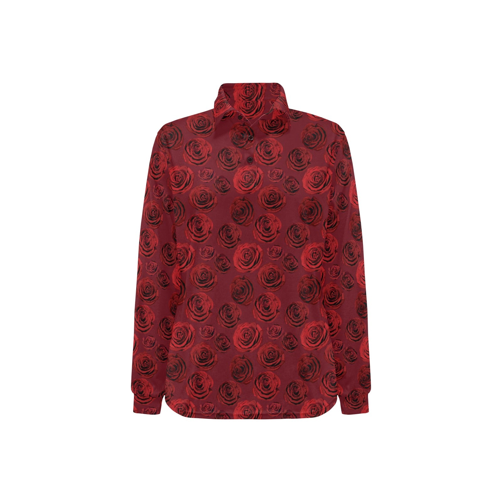 Rose Pattern Print Design 03 Women's Long Sleeve Polo Shirt