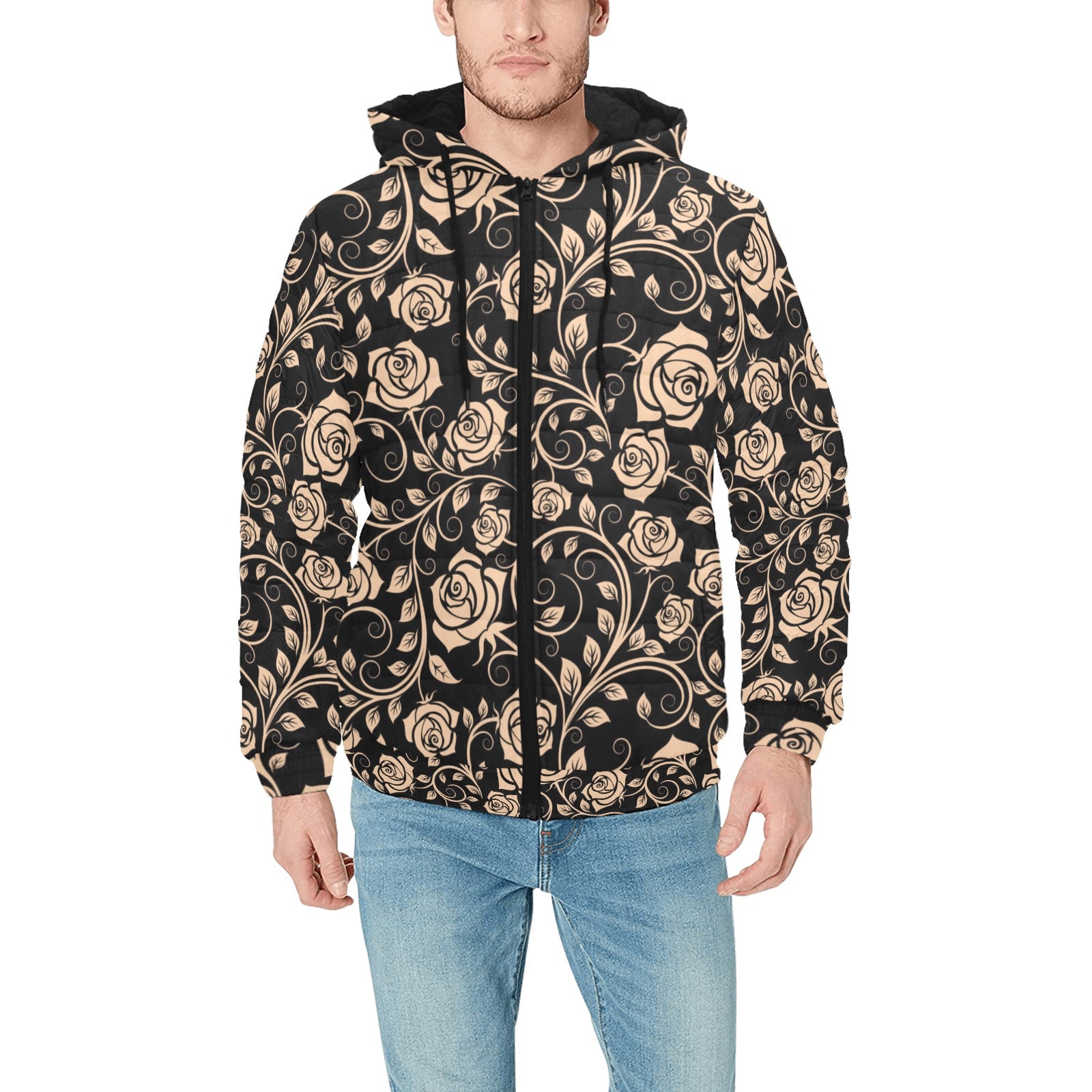 Rose Pattern Print Design 04 Men's Padded Hooded Jacket