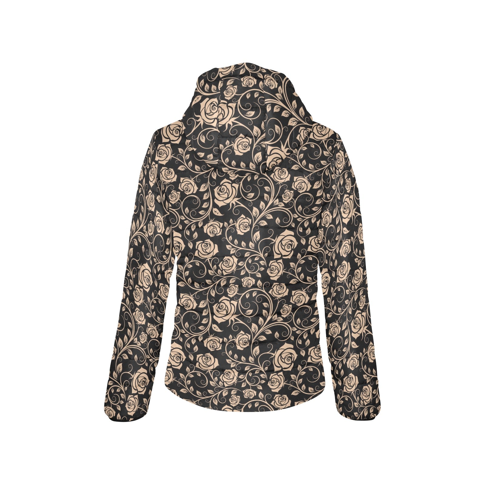 Rose Pattern Print Design 04 Women's Padded Hooded Jacket