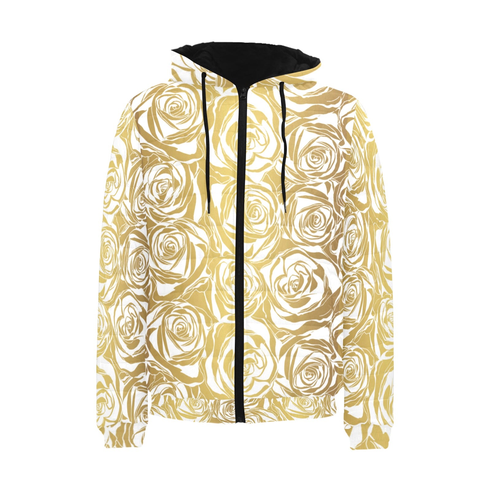 Rose Pattern Print Design 05 Men's Padded Hooded Jacket