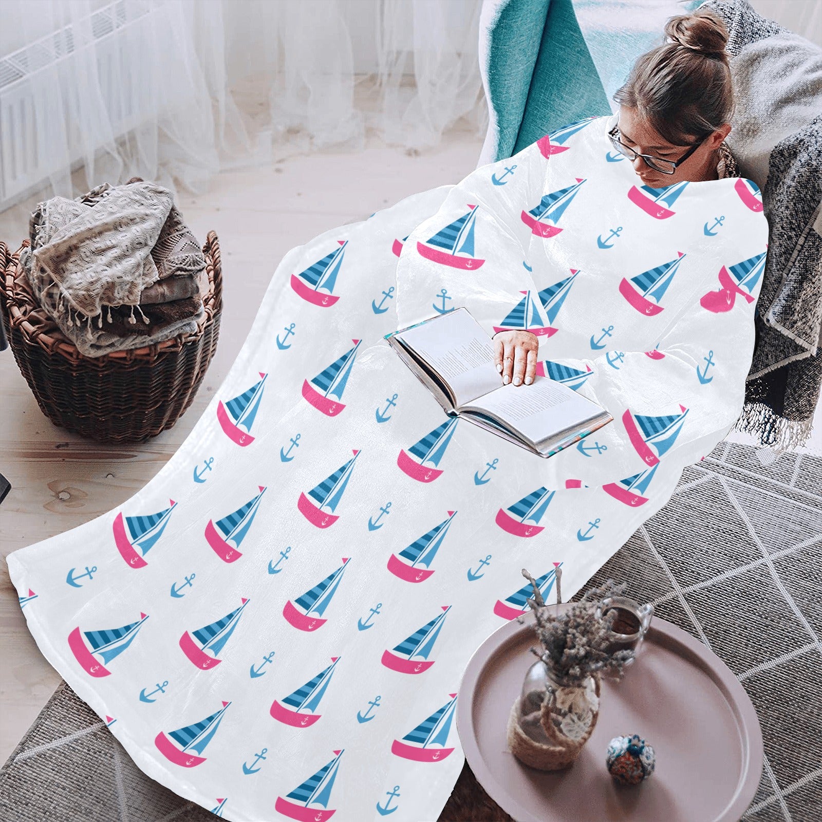 Sailboat anchor pattern Blanket Robe with Sleeves