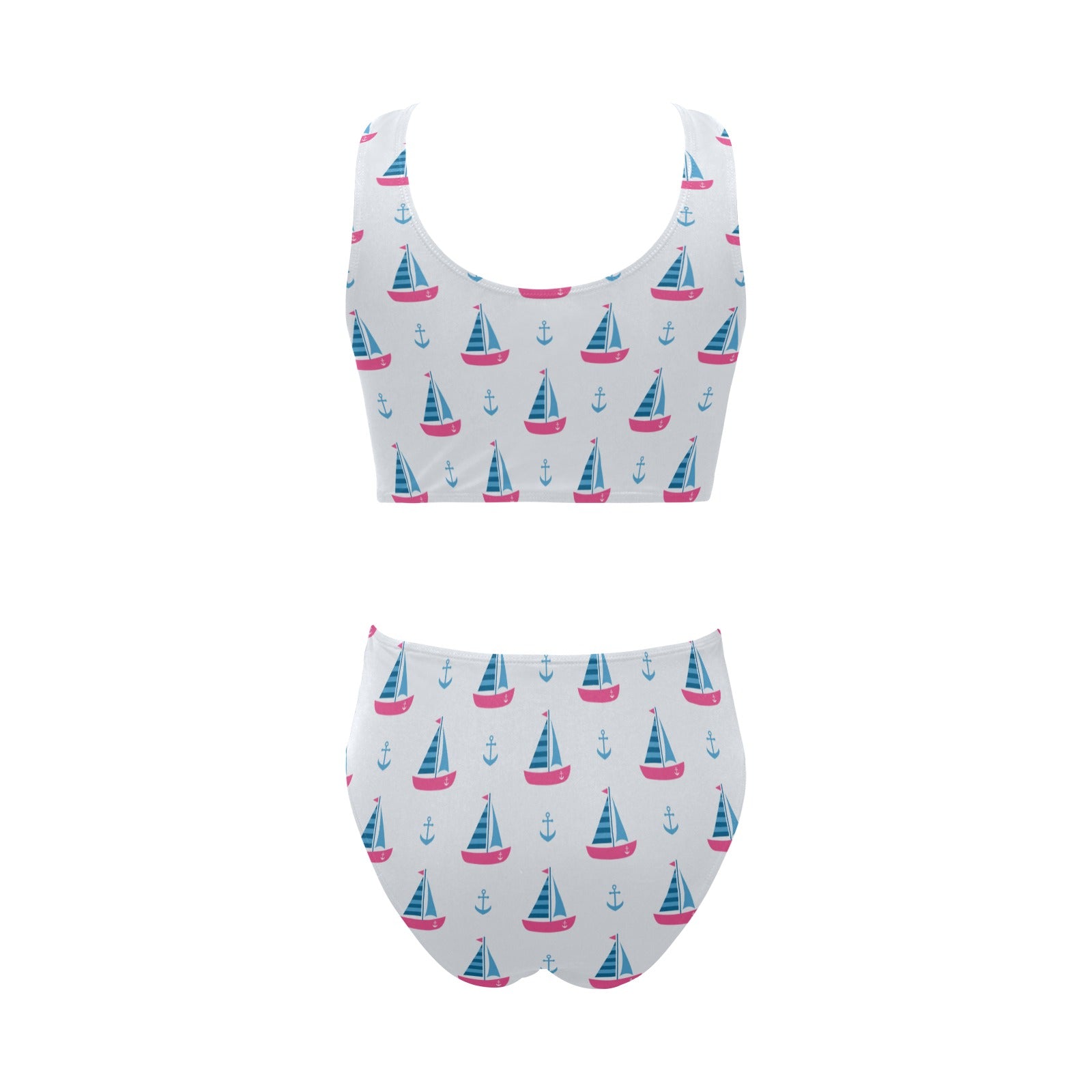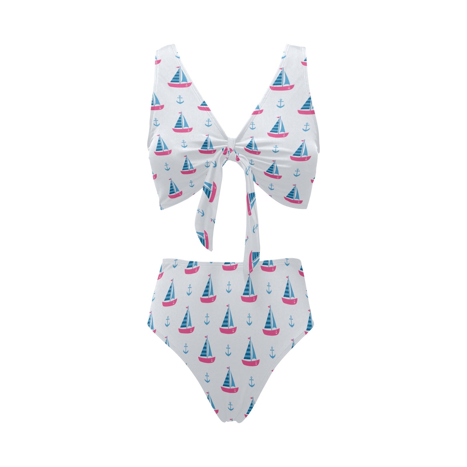 Sailboat anchor pattern Chest Bowknot High Waisted Bikini Swimsuit
