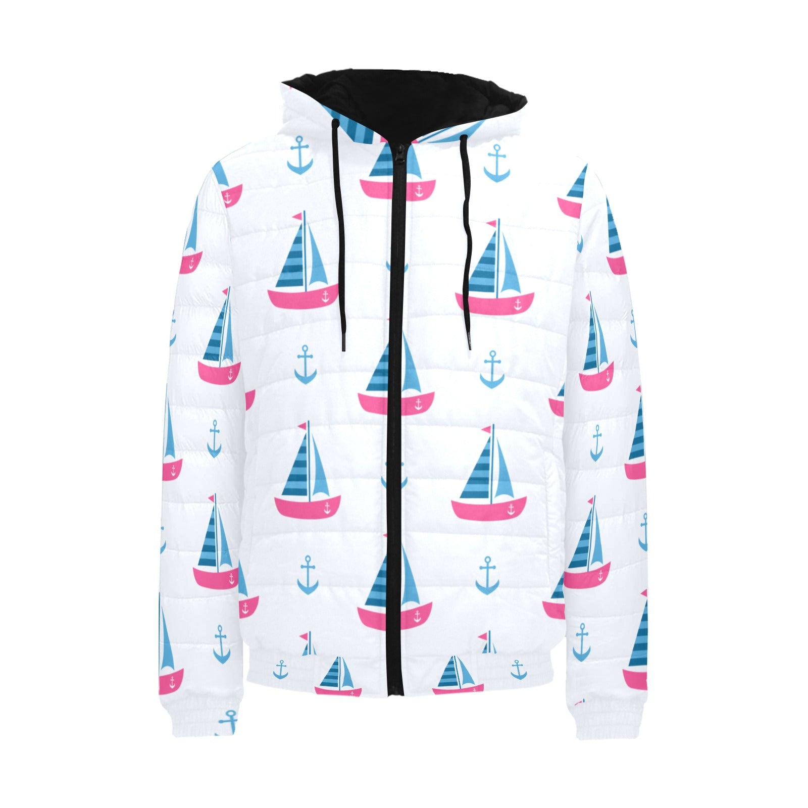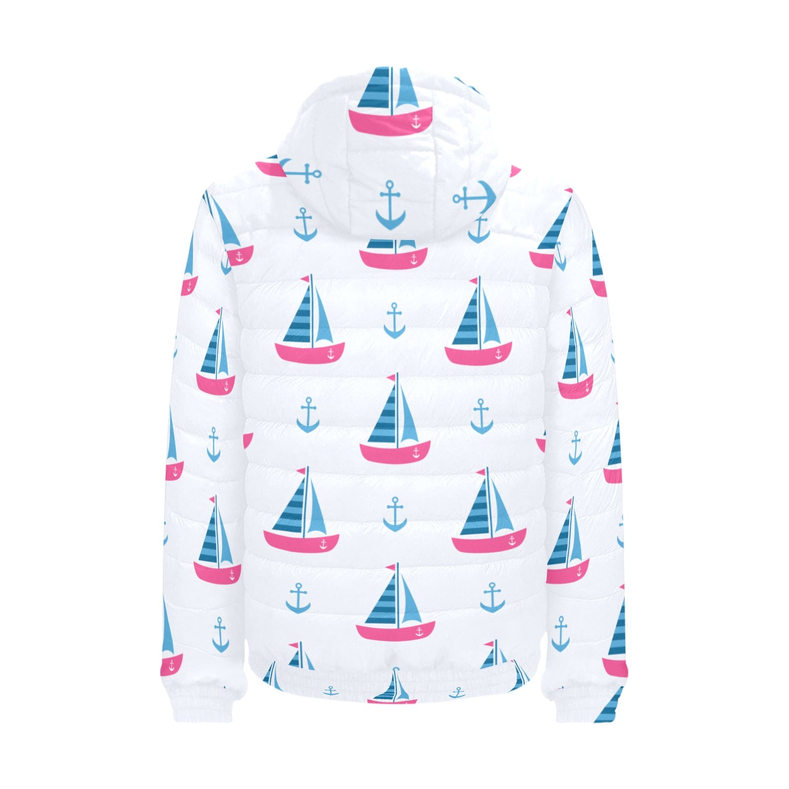 Sailboat anchor pattern Men's Padded Hooded Jacket