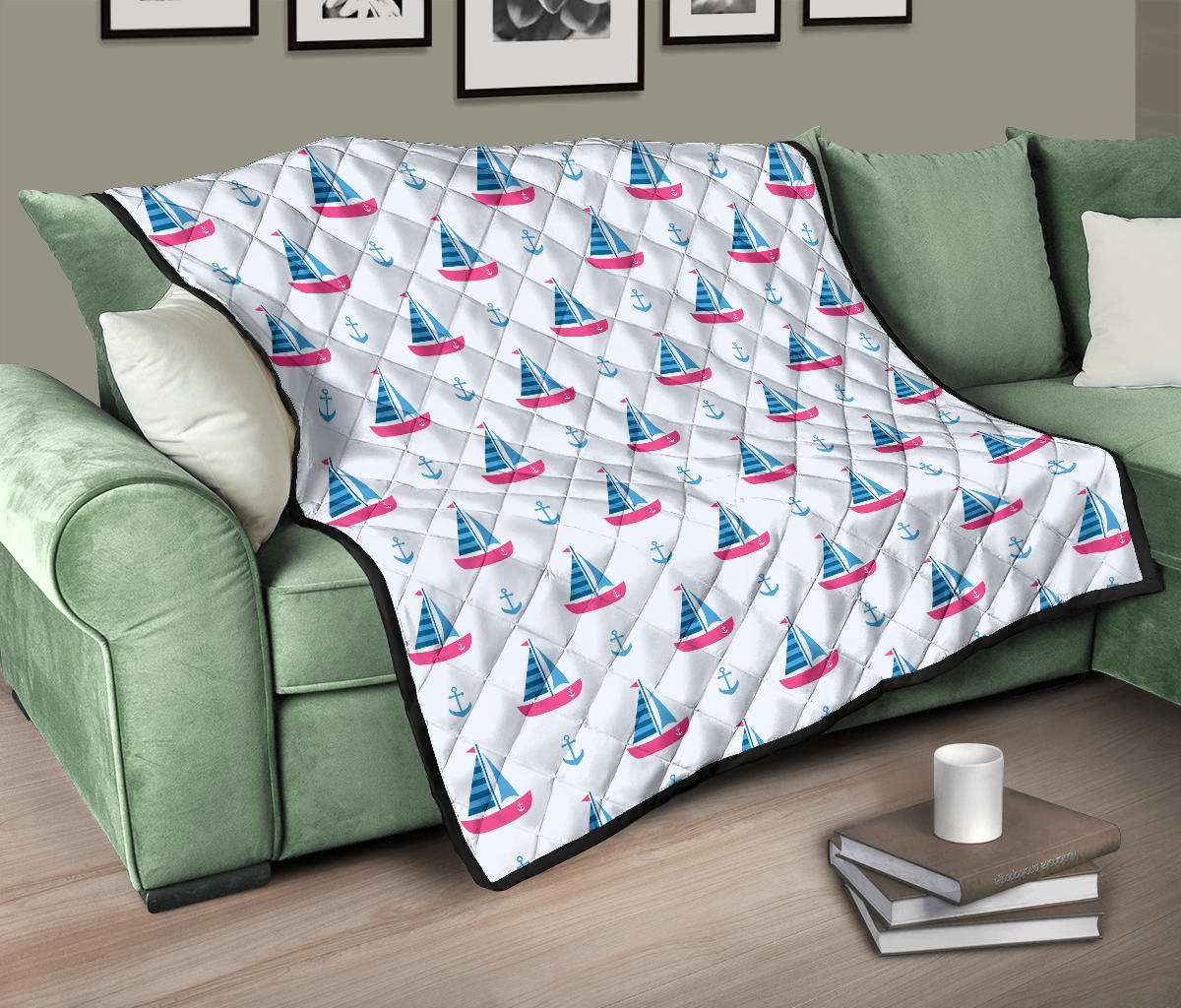 Sailboat Anchor Pattern Premium Quilt is a uniqued design and limited item. It made to order, hand printed, and sewn with love in our factory.