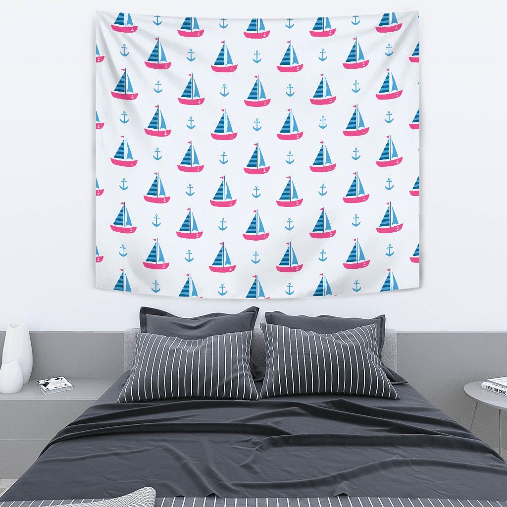 Sailboat anchor pattern Tapestry is a uniqued design and limited item. It made to order, hand printed, and sewn with love in our factory.