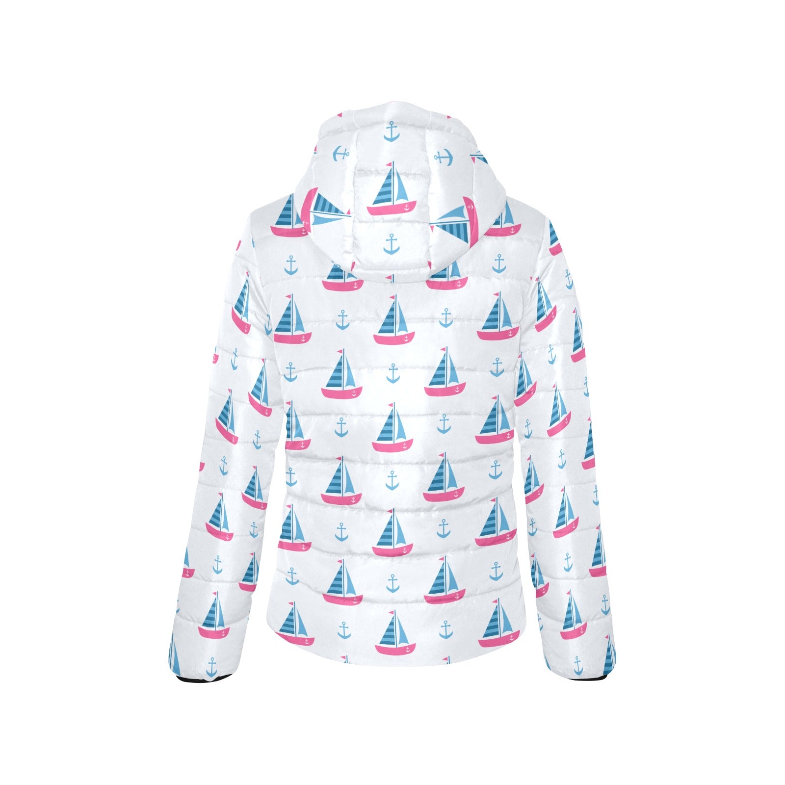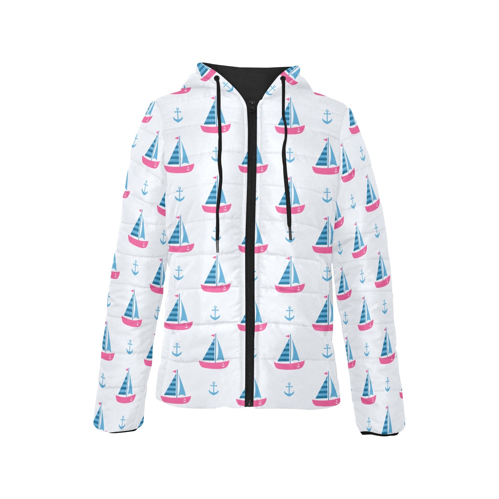 Sailboat anchor pattern Women's Padded Hooded Jacket