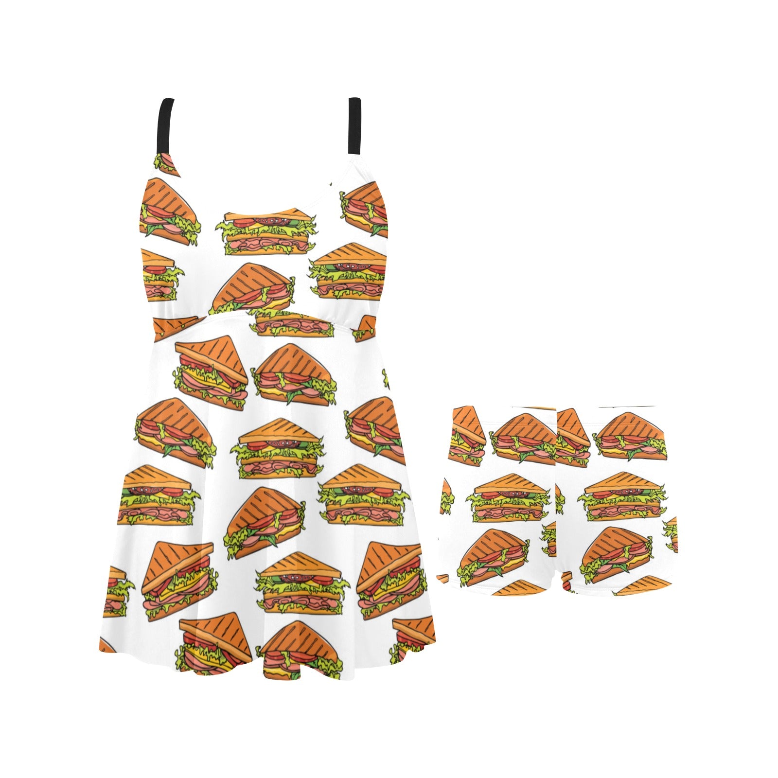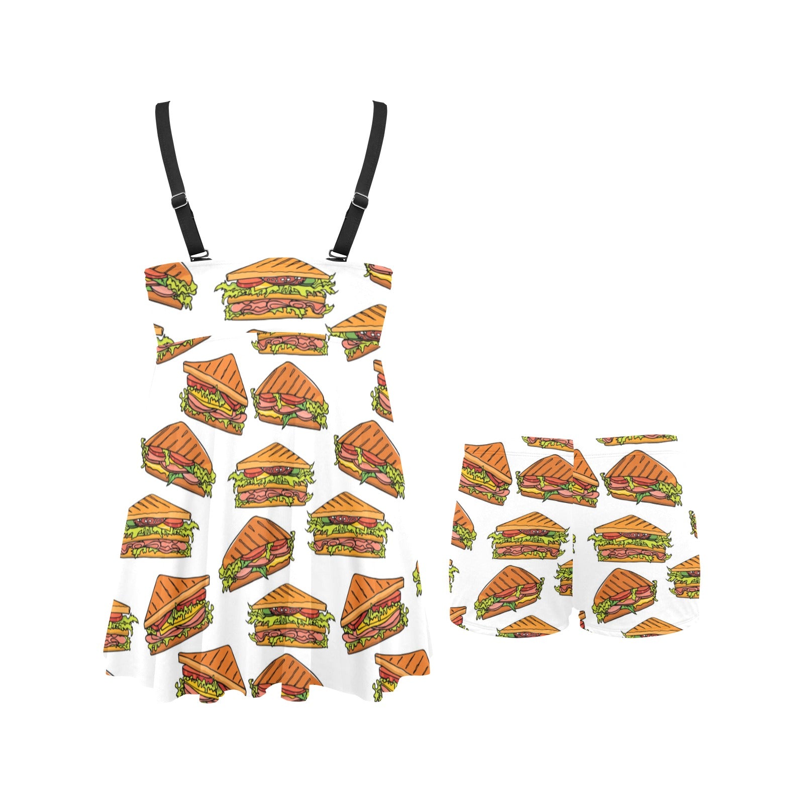 Sandwich Pattern Print Design 02 Chest Sexy Pleated Two Piece Swim Dress