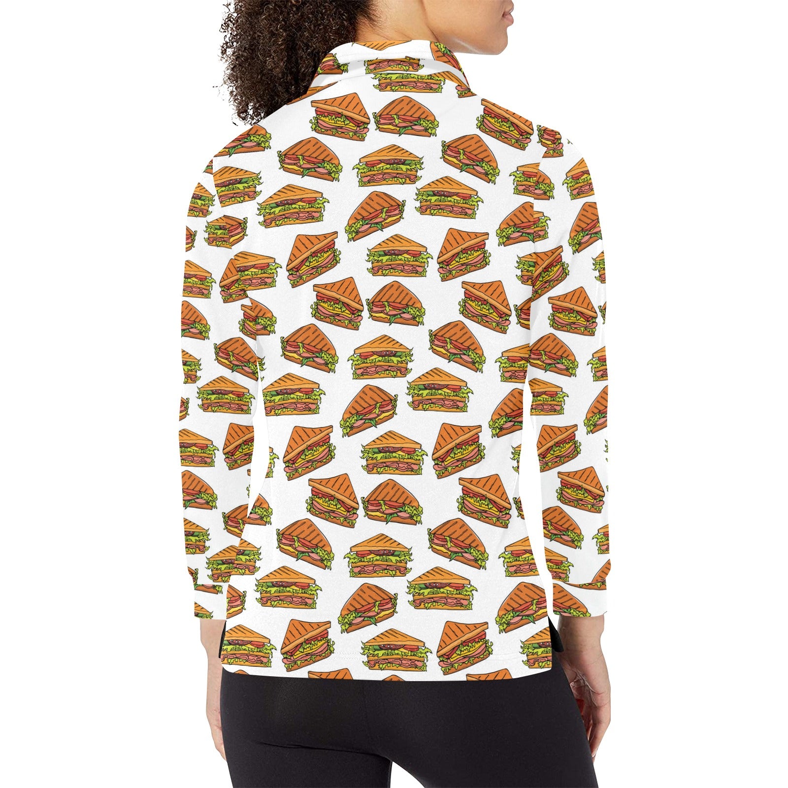 Sandwich Pattern Print Design 02 Women's Long Sleeve Polo Shirt