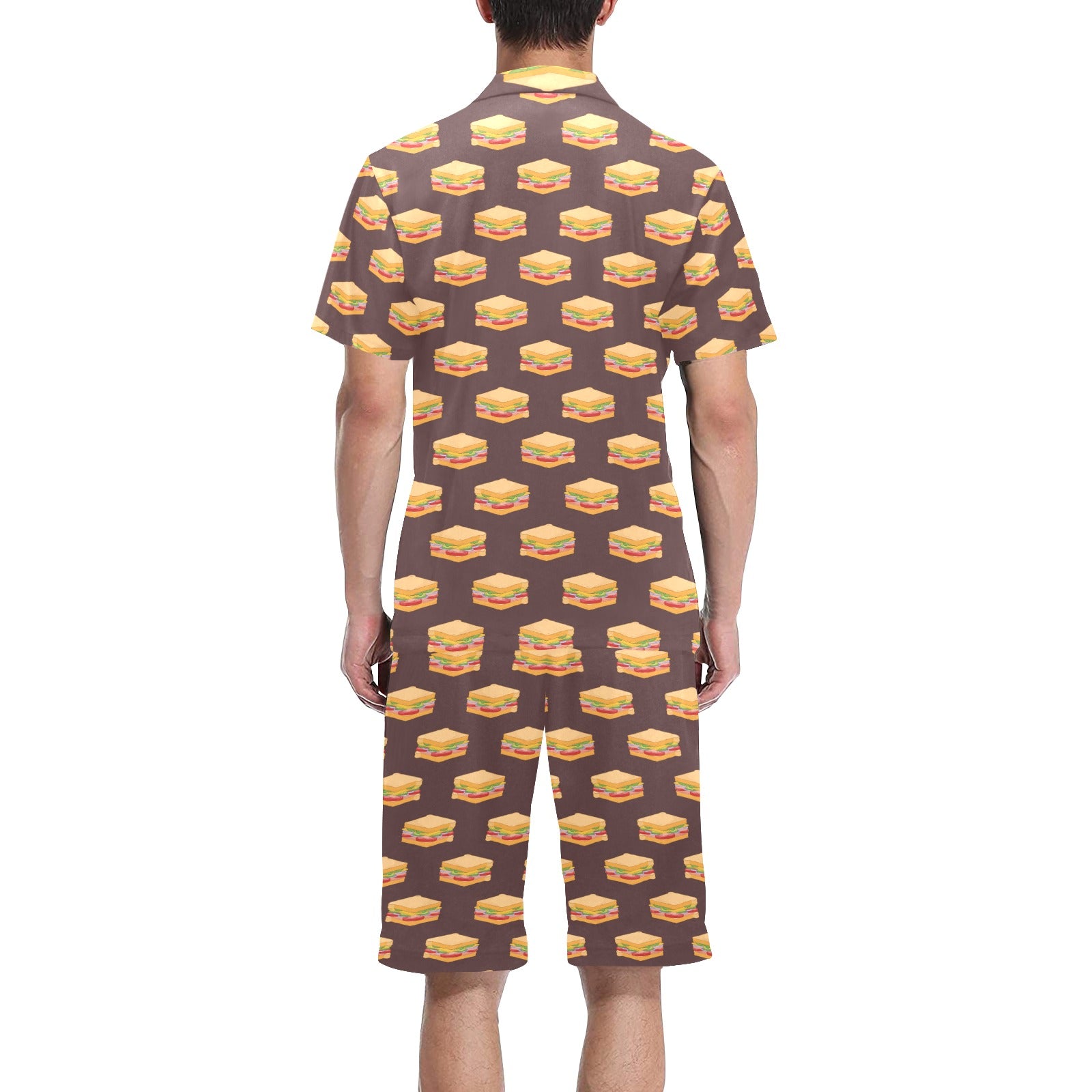 Sandwich Pattern Print Design 04 Men's V-Neck Short Pajama Set