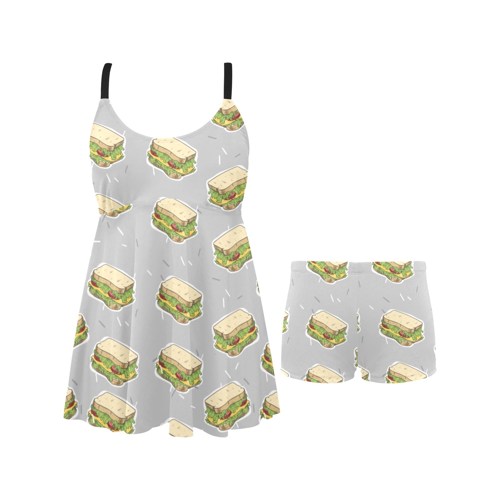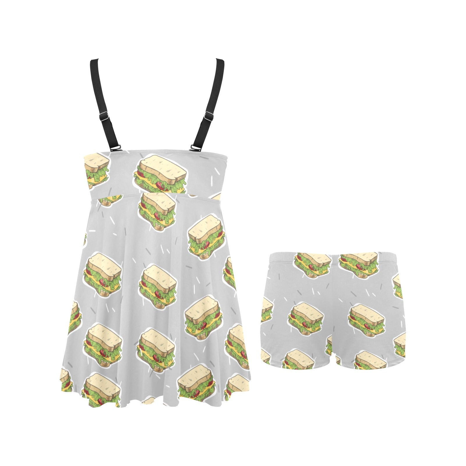 Sandwich Pattern Print Design 05 Chest Sexy Pleated Two Piece Swim Dress