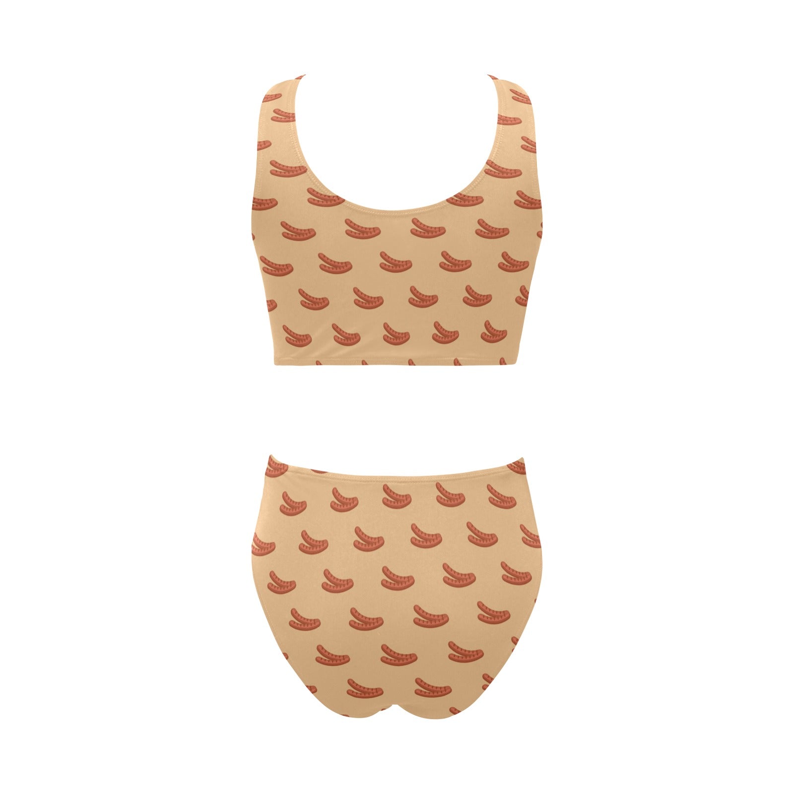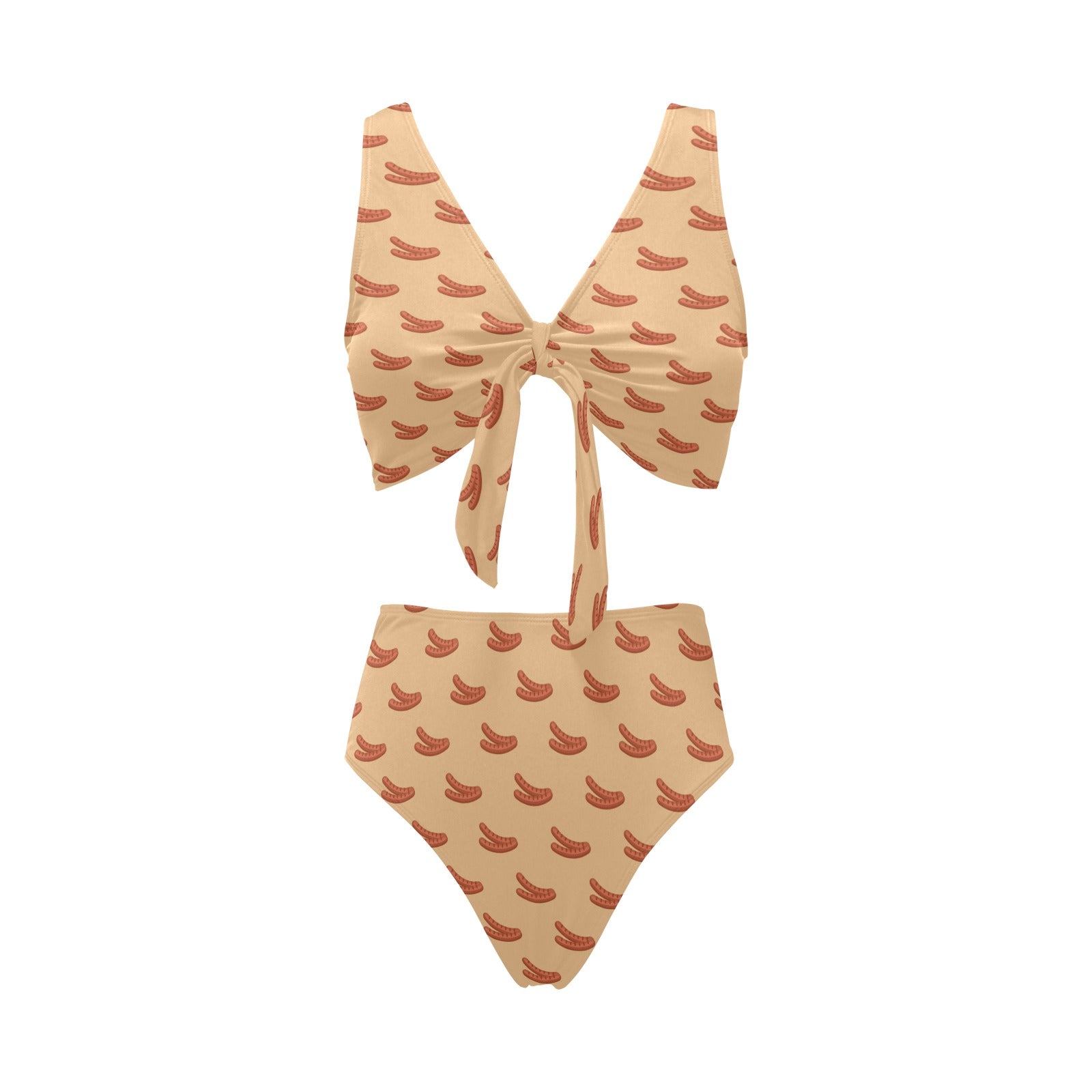 Sausage Pattern Print Design 03 Chest Bowknot High Waisted Bikini Swimsuit