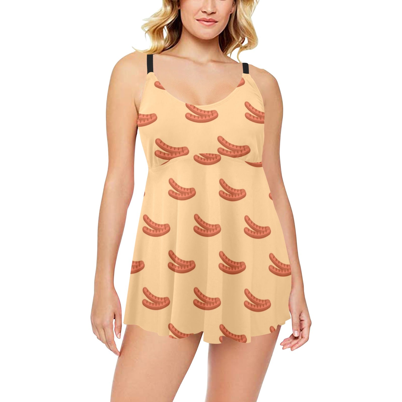 Sausage Pattern Print Design 03 Chest Sexy Pleated Two Piece Swim Dress