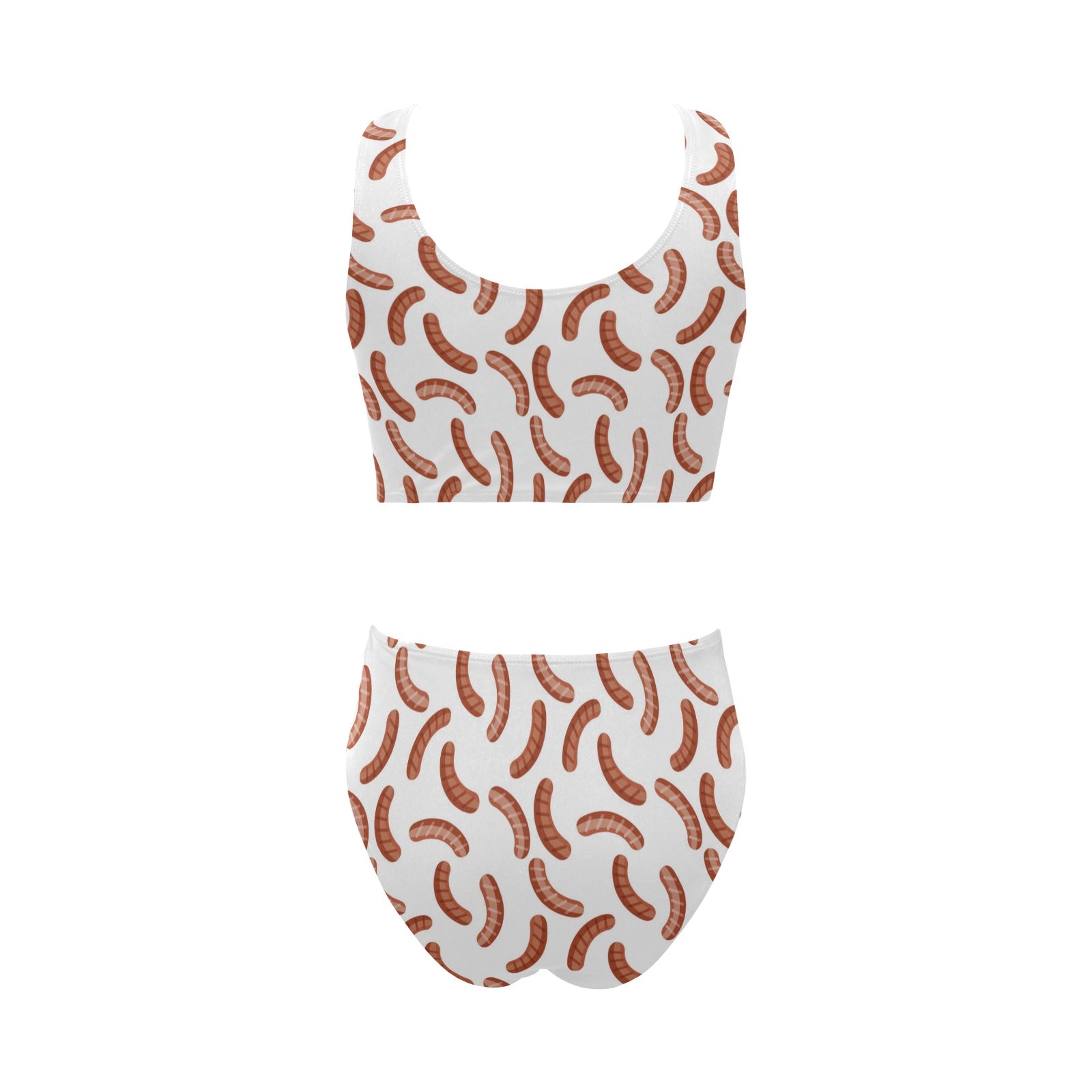 Sausage Pattern Print Design 04 Chest Bowknot High Waisted Bikini Swimsuit