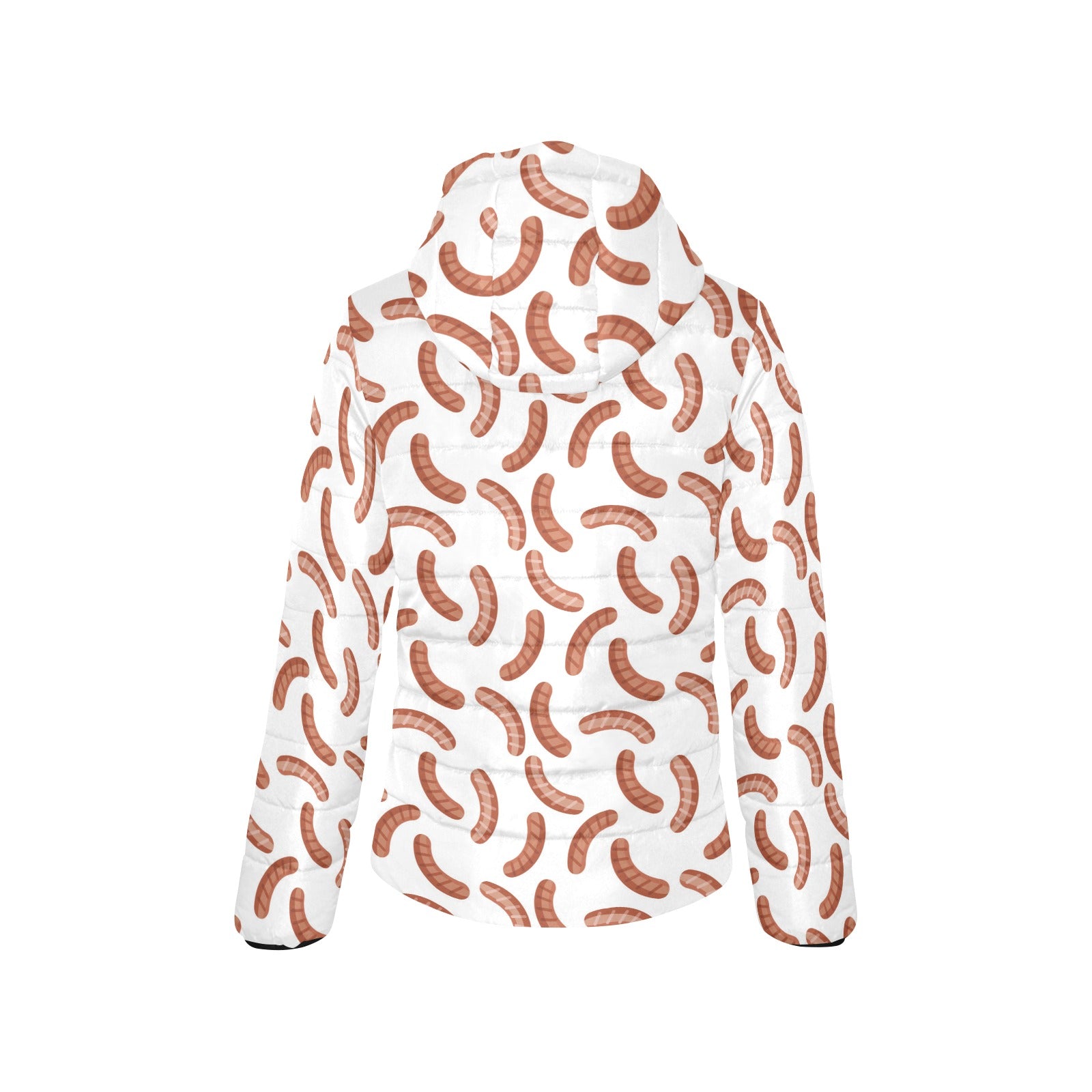 Sausage Pattern Print Design 04 Women's Padded Hooded Jacket
