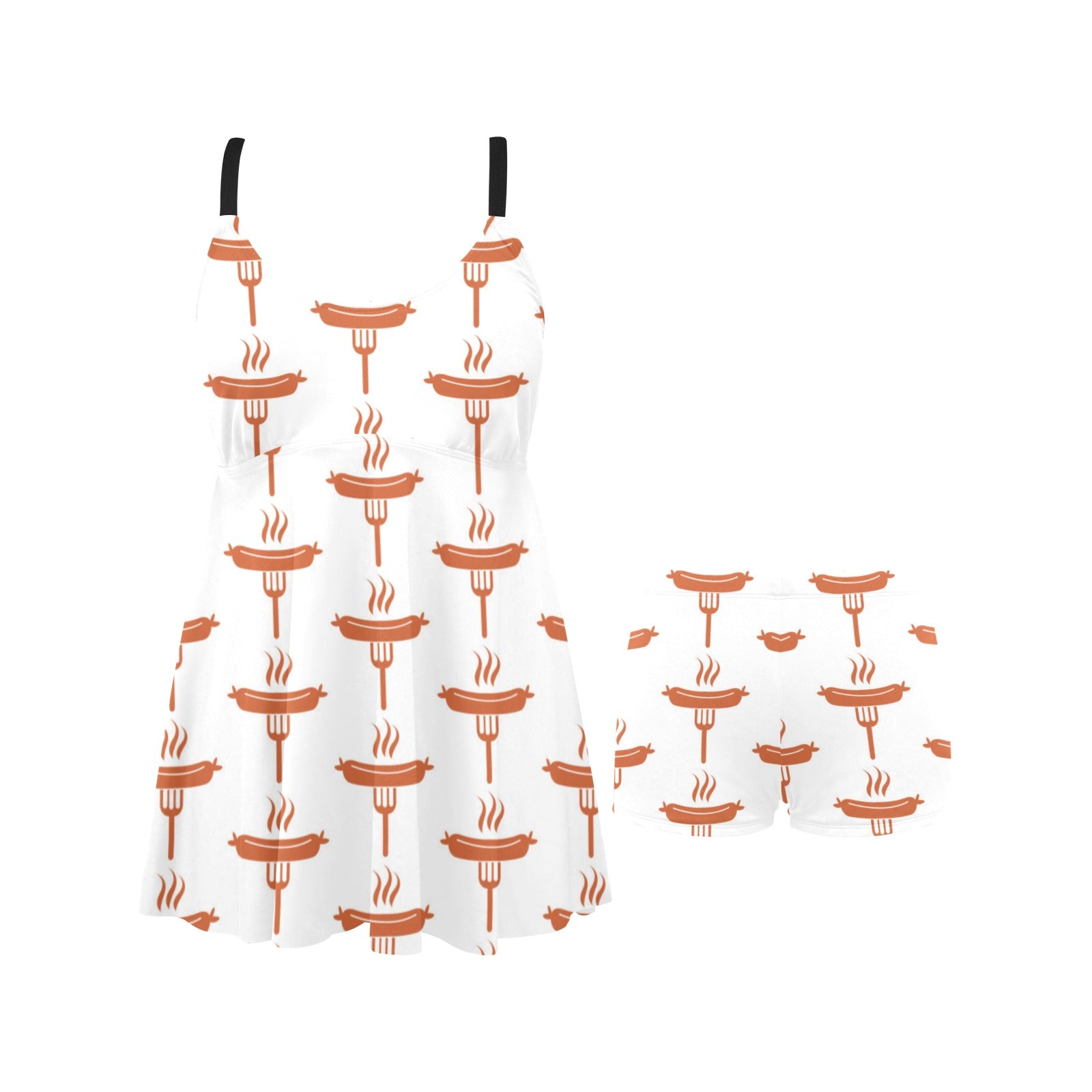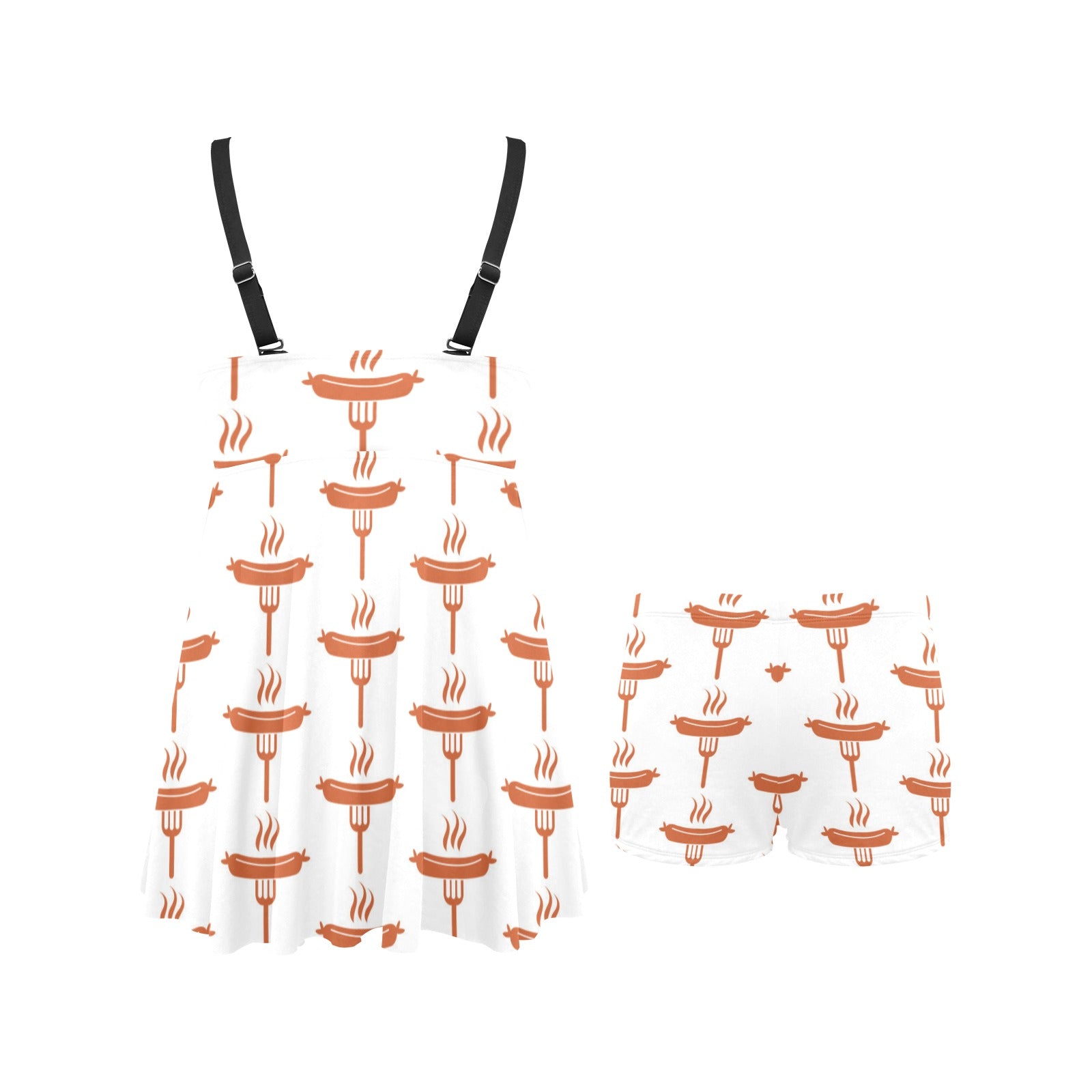 Sausage Pattern Print Design 05 Chest Sexy Pleated Two Piece Swim Dress