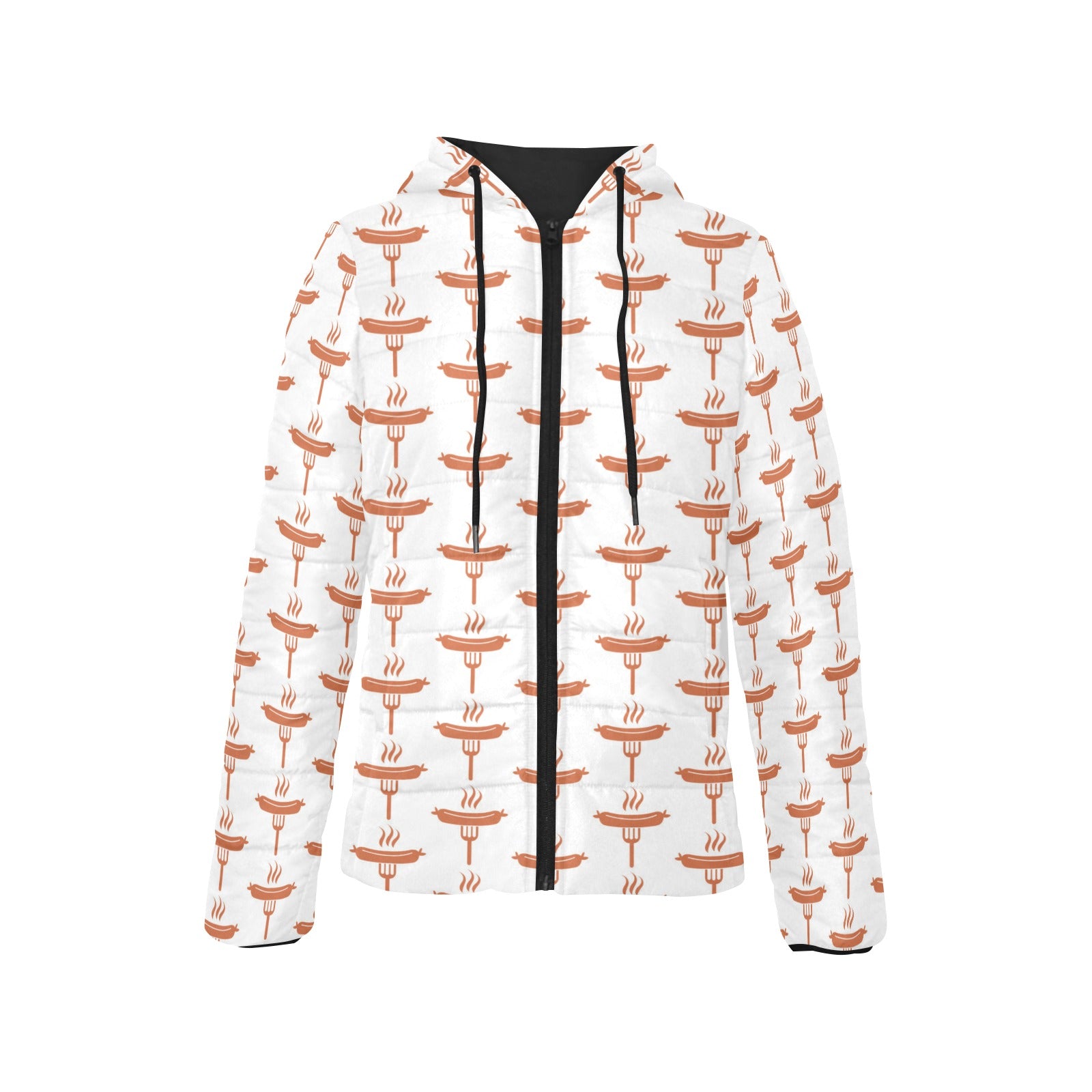 Sausage Pattern Print Design 05 Women's Padded Hooded Jacket