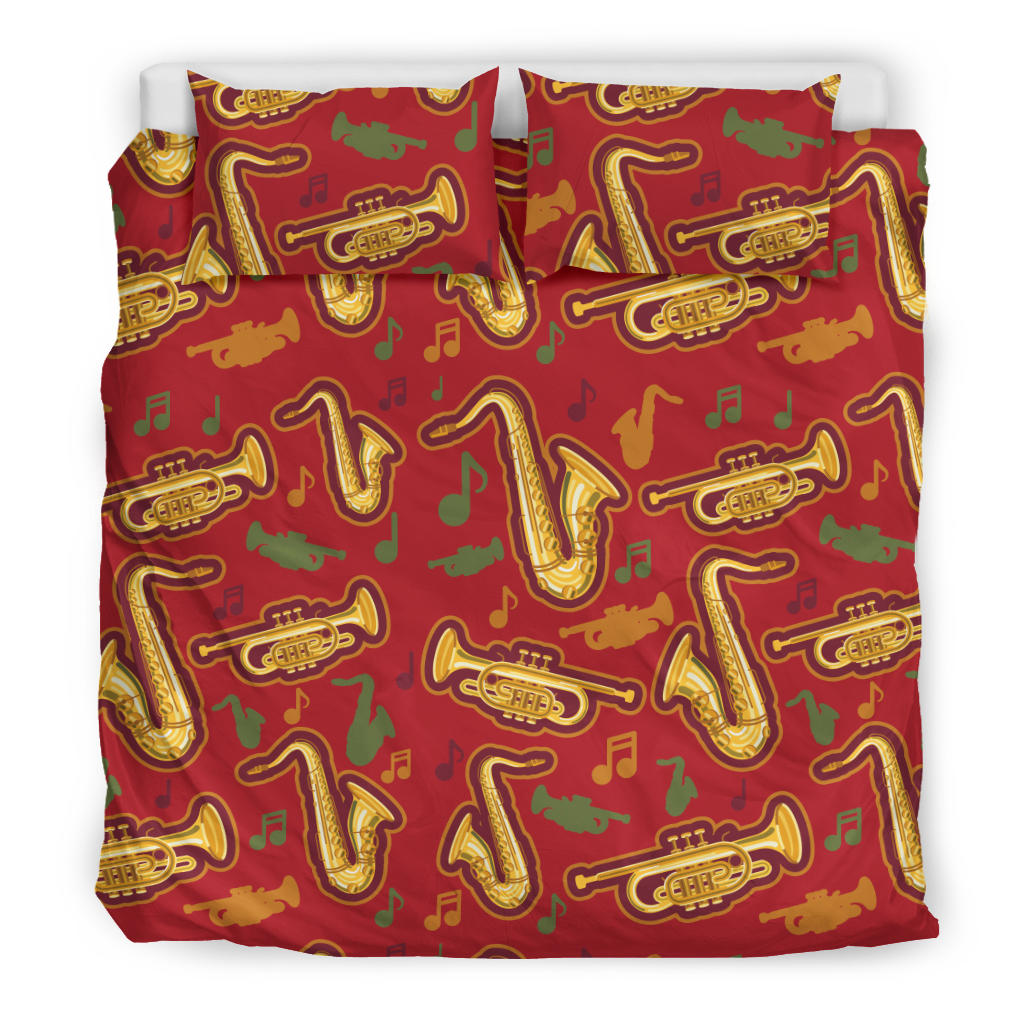 Saxophone Cornet Pattern Red Background Bedding Set