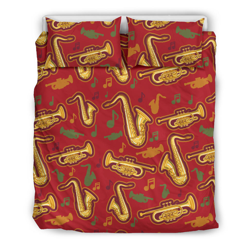 Saxophone cornet pattern red background Bedding Set is a uniqued design and limited item. It made to order, hand printed, and sewn with love in our factory.