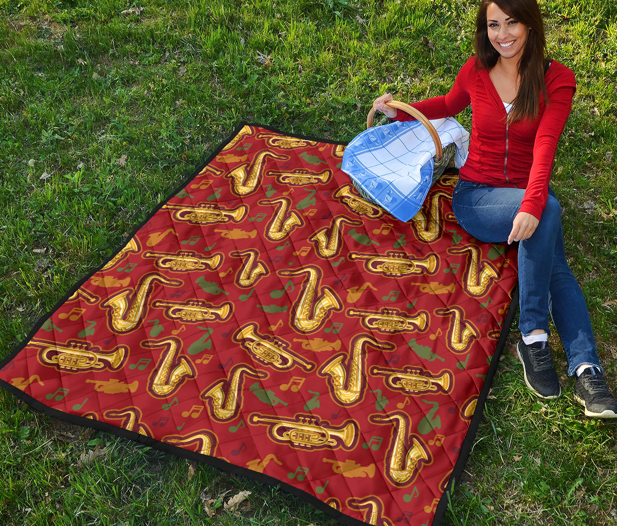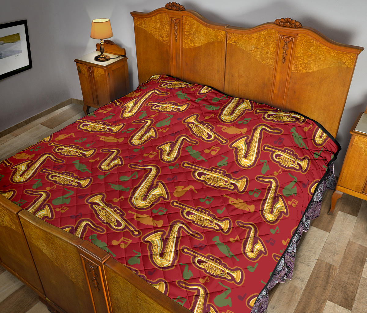 Saxophone Cornet Pattern Red Background Premium Quilt is a uniqued design and limited item. It made to order, hand printed, and sewn with love in our factory.